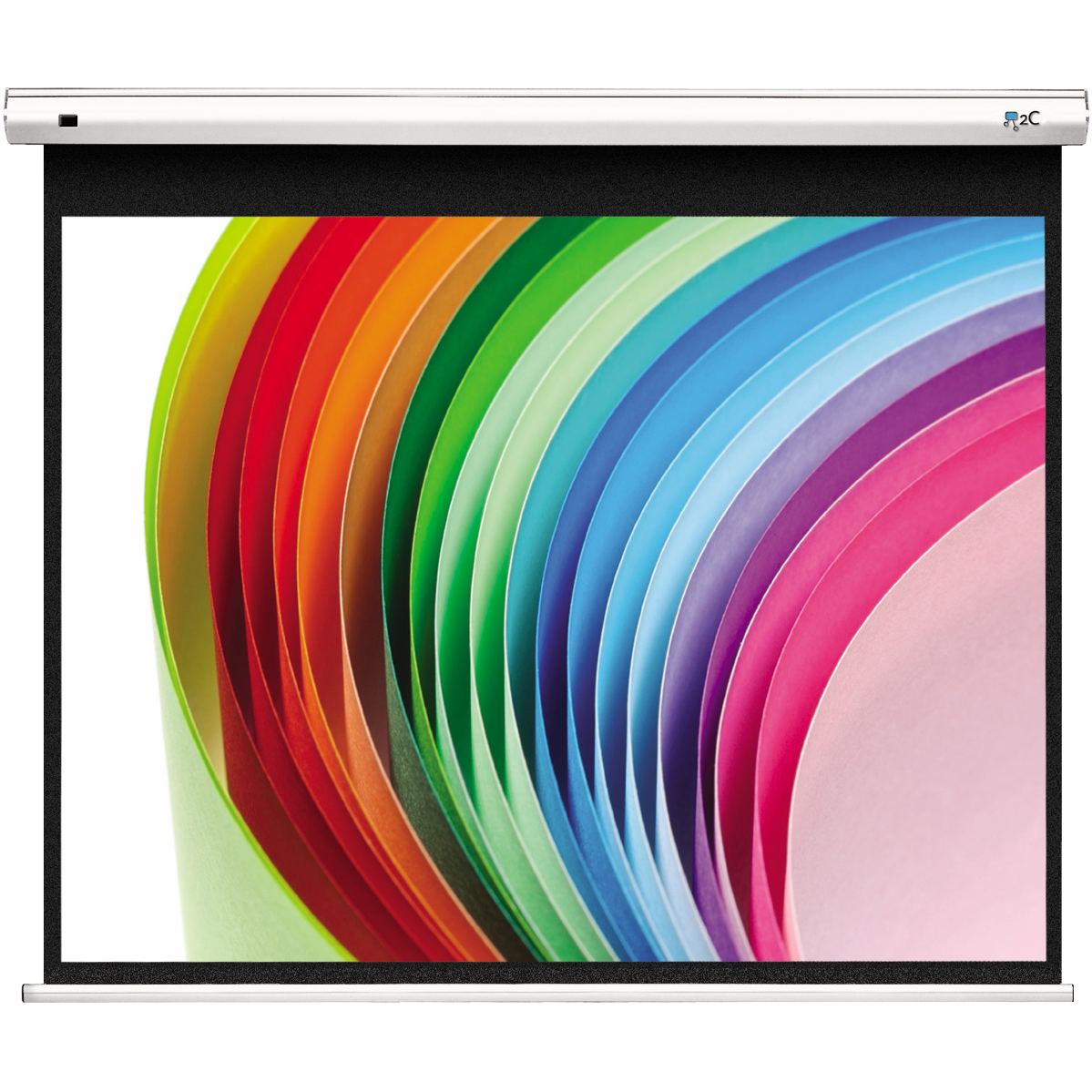 With its sleek modern design the 2C Screen IT 106 Motorised Screen is the perfect way to enhance your home cinema experience. This electric projector screen delivers a cinema-like viewing experience in the comfort of your own home. At the touch of a button the screen lowers smoothly and quietly from its housing ready for your movie marathon. The large 106 inch 16:9 aspect ratio screen provides an immersive viewing area for all your media content and presentations. The matte white projection surface diffuses light uniformly for vivid colours and sharp images even in ambient light conditions. Enjoy your favourite films sports and games in superior clarity and detail on this high-quality motorized screen. With its durable metal housing this electric screen is built to last while adding a touch of style to your living space. Setting up is a breeze with the included remote adjustable wall/ceiling brackets and cables. Transform any room into a private theatre and enjoy the convenience of stowing the screen away when not in use. Experience the magic of the movies with the 2C Screen IT 106 Motorised Screen.The manufacturer's part number for this product is 2C-2C521. Learn more about this motorized projection screen today.