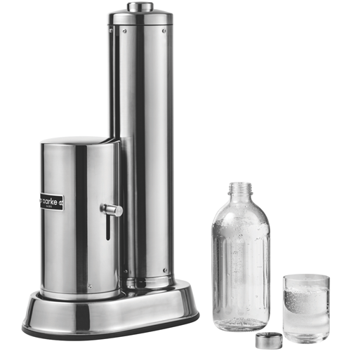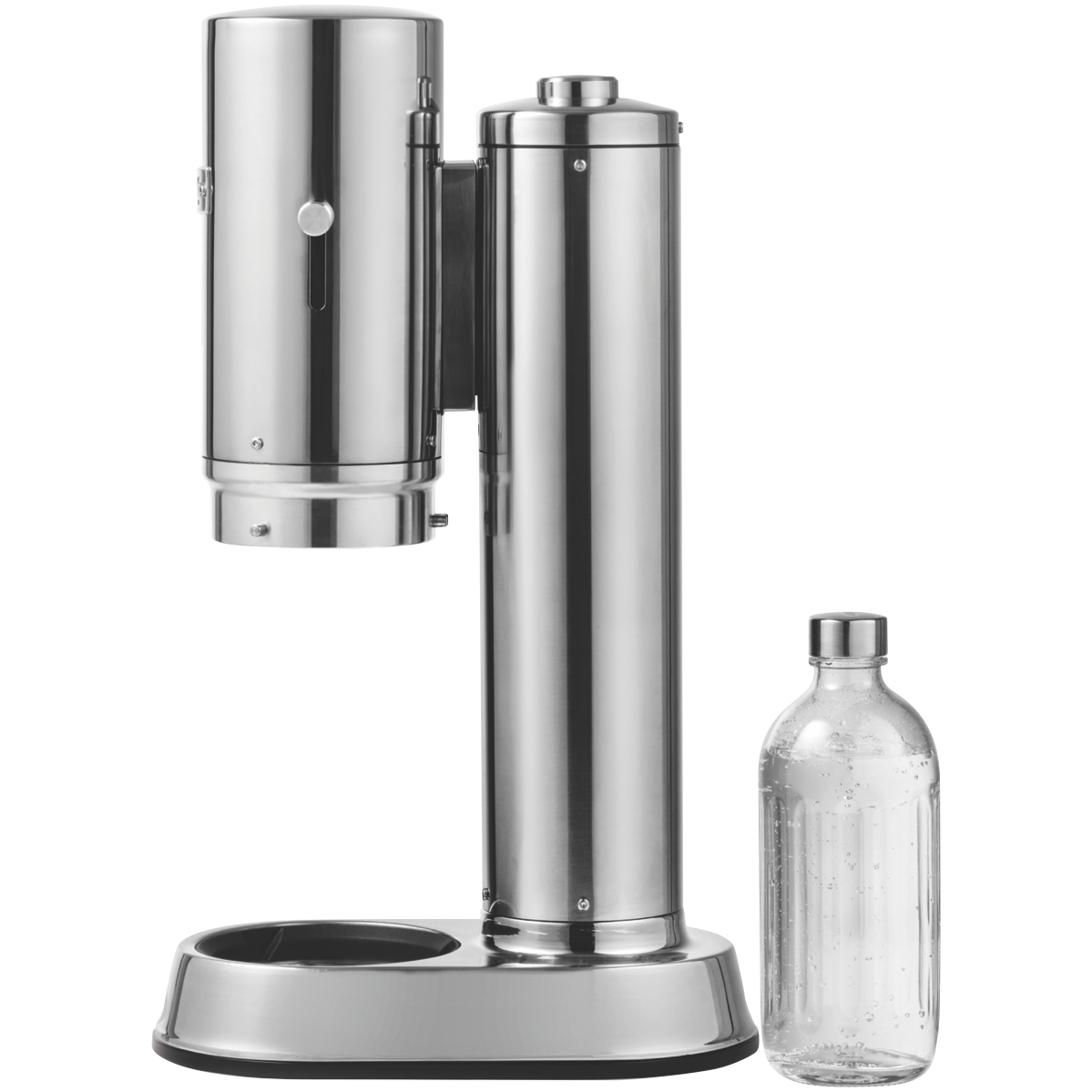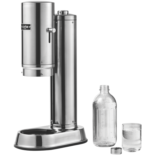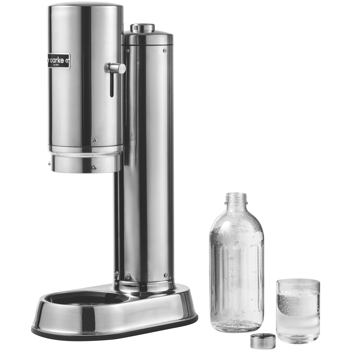 Enjoy an effortless fizz with the aarke Carbonator Pro Steel soda maker an elegant yet durable stainless steel appliance that makes it simple to create refreshing sparkling water at home. This one-handed device features aarke's unique Push-to-Lock mechanism for smooth hassle-free carbonation every time. Just add water to the included 800ml glass bottle insert a CO2 charger and push the bottle into place to produce up to 700ml of bubbly water in seconds. The sleek cordless Carbonator Pro adds sparkle to your kitchen with its modern steel finish. It includes one glass bottle and cleaning cloth for easy care. At just 502mm high and 173mm wide this compact soda maker saves space on your benchtop while delivering fresh carbonated water on demand. Give plain water some zing with the aarke Carbonator Pro Steel.