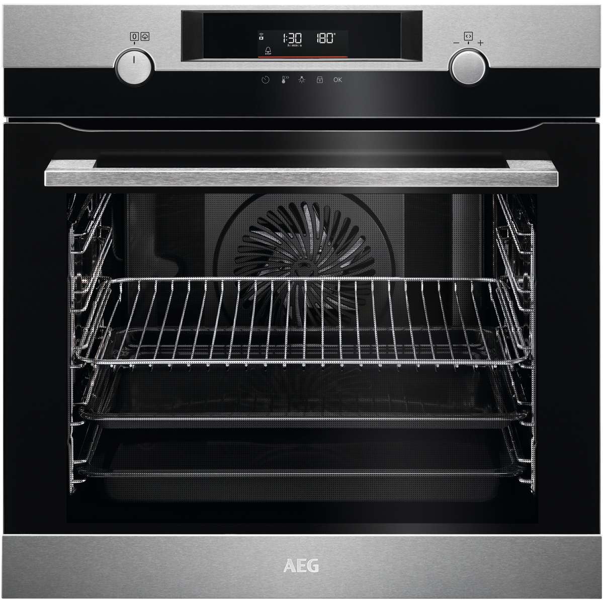 The SteamBake button in this oven adds steam at the beginning of the baking process. The steam cooking keeps the dough moist on the surface to create a golden colour and tasty crust while the centre stays soft and tender. The self-cleaning pyrolytic function takes all the effort out of keeping your oven clean. The oven is heated to a temperature that makes the grease and food residue turn to ash which can then simply be wiped away with a damp cloth. Set the settings on your oven with ease and keep up with the progress of your meal with clarity. The two-coloured display shows you time temperature and the progress of what you are cooking as well as access to other functions and settings to make the most out of your oven. The Fast heat-up function warms your oven to the desired temperature very quickly so you are able to start cooking sooner. 45 specially designed pre-set recipe programs mean you can select the dish you want to cook and let the oven do the rest.