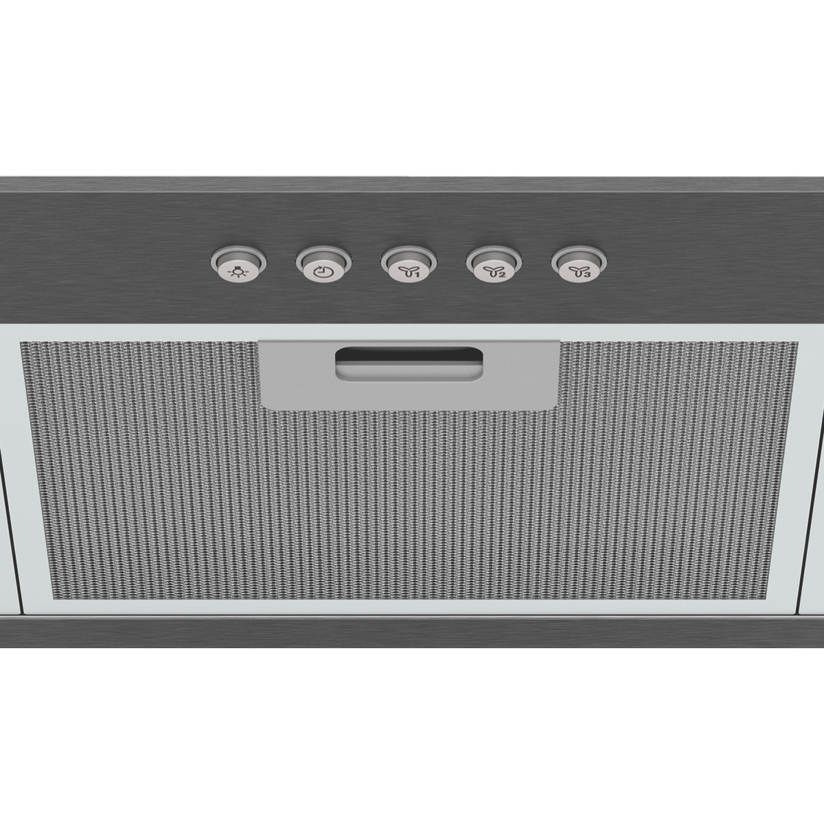 Three fan-speeds allow you to set the airflow according to how and what you are cooking. Set the fan at low when simmering or increase to high when boiling or frying. Bright LED lighting clearly illuminates your hob and is also more energy efficient and environmentally friendly than traditional halogen lighting. Anti-fingerprint dark stainless steel prevents dirty marks from sticking to the surface.