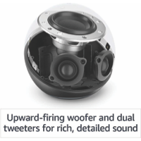 • Echo delivers clear highs, dynamic mids, and deep bass for rich, detailed sound that automatically adapts to any room