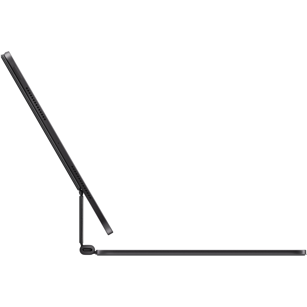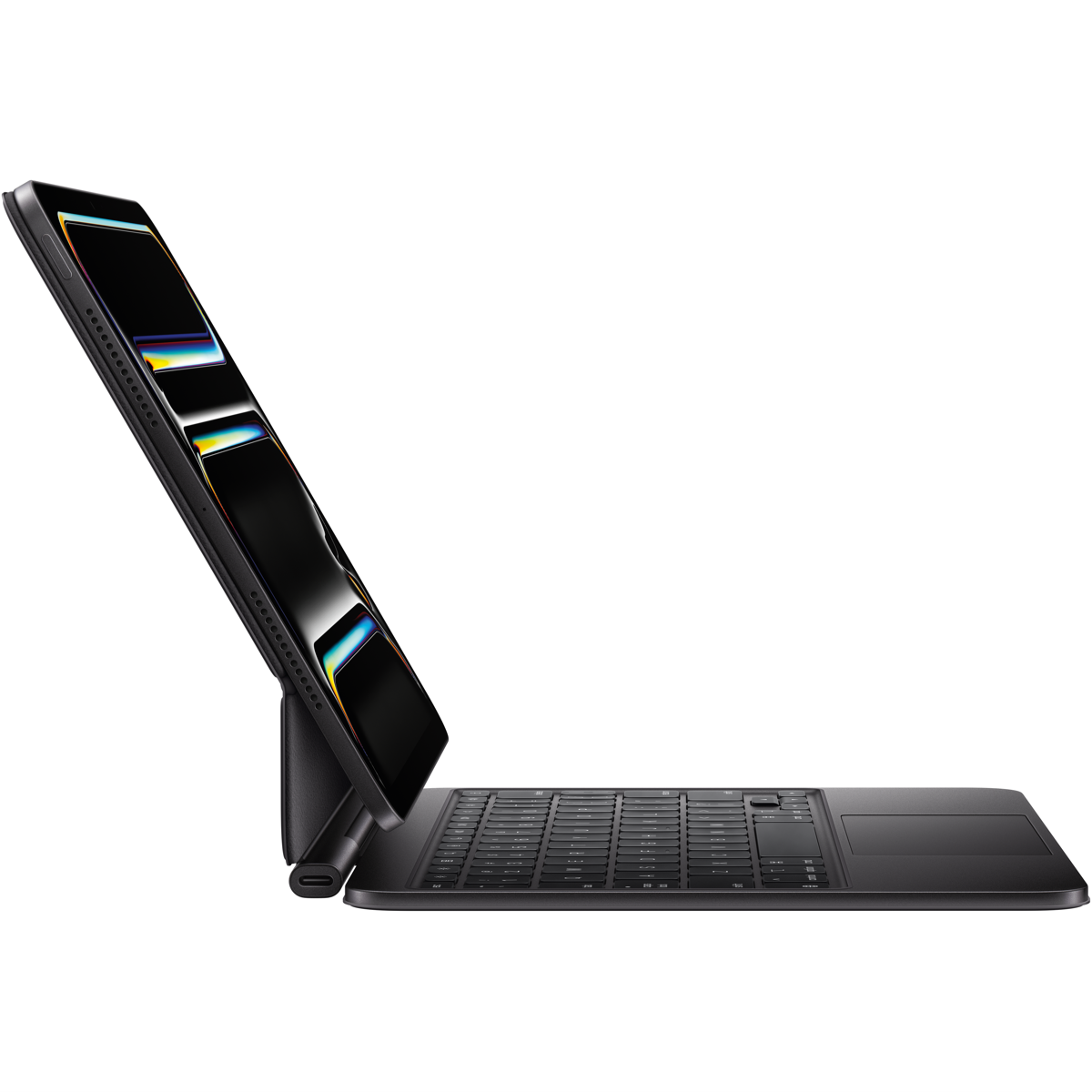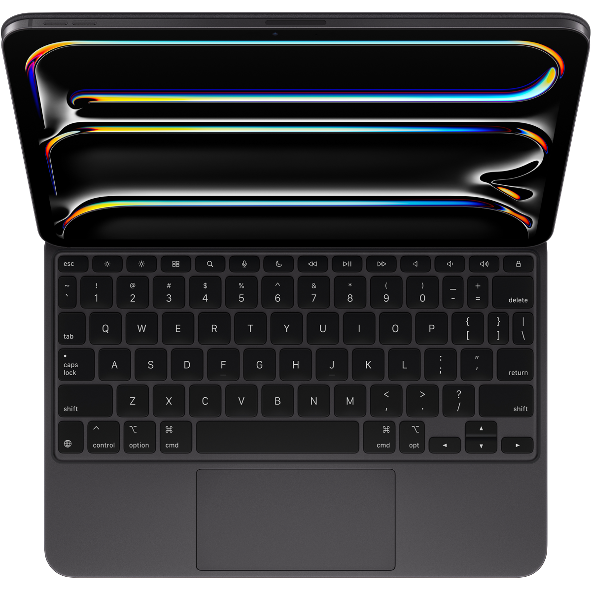Magic Keyboard for iPad Pro delivers an amazing typing and trackpad experience in a sleek portable new design with an aluminium palm rest. The keyboard includes a function row a USB-C connector for pass through charging and front and back protection for your iPad. The floating cantilevered design smoothly adjusts to multiple viewing angles. A larger glass trackpad expands how you can work with iPadOS and delivers haptic feedback for precision -based workflows and Multi-Touch gestures.