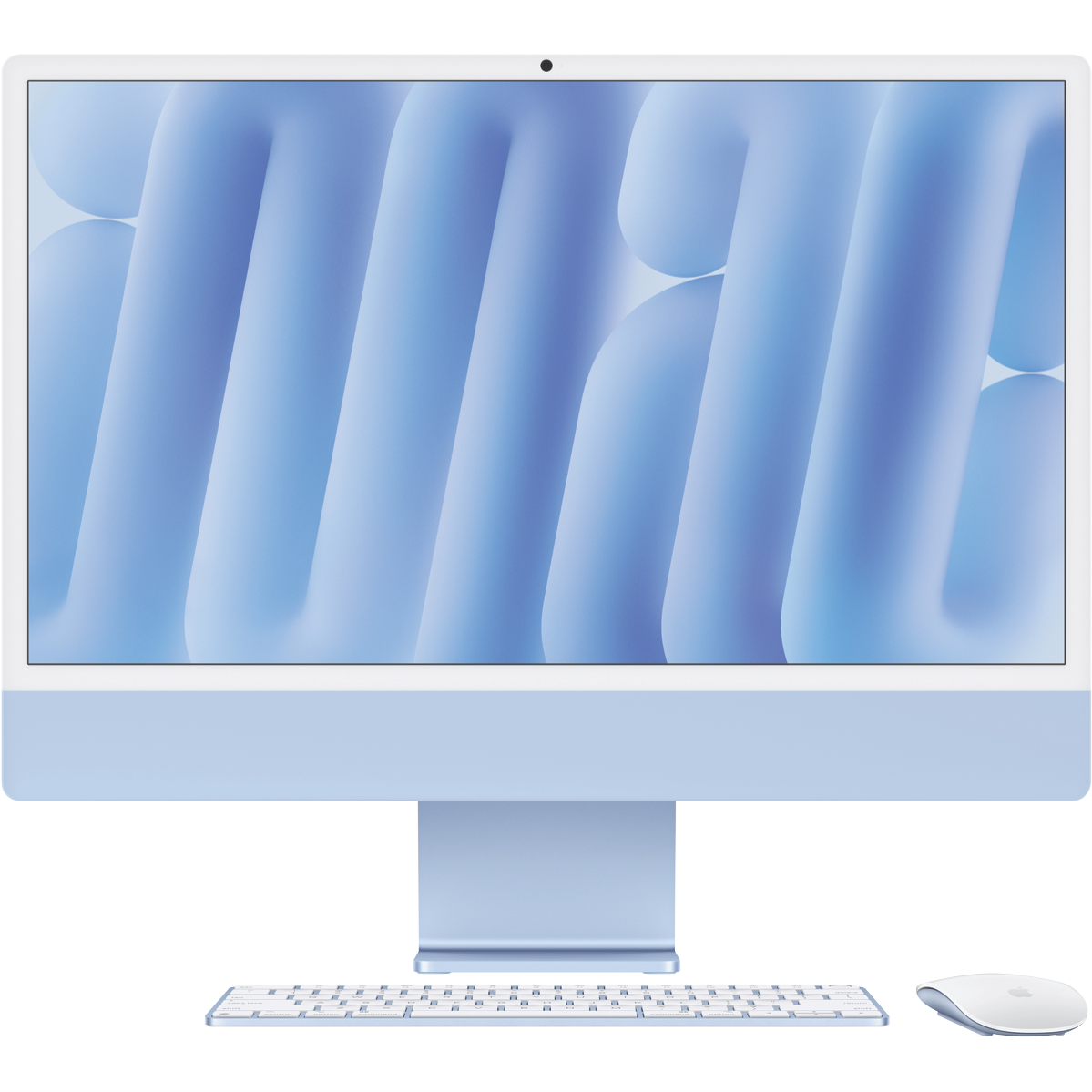 The ultimate all-in-one desktop iMac 24 Retina 4.5K Display with M4 chip 10-core GPU 16GB 256GB in Blue MWV13X/A is supercharged by the M4 chip browsing and multitasking across apps feels snappier. With a stunning 24-inch 4.5K Retina display (2) in an iconic design and advanced camera mics and speakers. iMac is brilliant for work and play with strikingly thin desktop design.Built for Apple Intelligence (1) it is the personal intelligence system that helps you write express yourself and get things done effortlessly. With groundbreaking privacy protections it gives you peace of mind that no-one else can access your data not even Apple.You can get more things done faster with the Apple M4 chip. From editing photos to creating presentations to gaming you ll fly through work and play. The 24-inch 4.5K Retina display (2) features 500 nits of brightness and supports up to 1 billion colours.With advanced camera and audio stay perfectly framed and sound great with a 12MP Center Stage camera three studio-quality mics and six speakers with Spatial Audio.All your favourites including Microsoft Excel Adobe Photoshop and Zoom run lightning-fast in macOS with Apple Silicon (3).Mac works like magic with your other Apple devices you can view and control what s on your iPhone from your Mac with iPhone Mirroring (4) copy something on iPhone and paste it on Mac send texts with Messages or use your Mac to make and answer FaceTime calls (5).iMac features up to four Thunderbolt 4 ports that expands your accessory options and enabling lightning-fast data transfers. Connect up to two external 6K displays for a vast canvas to view your work and enjoy seamless connectivity with Wi-Fi 6E and Bluetooth 5.3.6.Every Mac comes with robust defences against viruses and malware as the privacy and security are built in within your devices. If your Mac is lost or stolen Find My can help you get it back. FileVault makes sure your files are encrypted so others cannot access them. And free security updates help keep your Mac protected.Disclaimers:Configurable options are available. iMac colour availability may vary. Nano-texture availability may vary.(1) Apple Intelligence is available in beta on all Mac models with M1 and later with Siri and device language set to US English as a macOS Sequoia update. English (Australia Canada Ireland New Zealand South Africa UK) language support available December 2024. Some features and support for additional languages like Chinese English (India Singapore) French German Italian Japanese Korean Portuguese Spanish Vietnamese and others will be coming over the course of the next year. (2) Actual diagonal screen size is 23.5 inches.(3) Apps are available on the App Store. Software and content may be sold separately. Title availability is subject to change.(4) Available on Mac computers with Apple silicon and Intel-based Mac computers with a T2 Security Chip. Requires that your iPhone and Mac are signed in with the same Apple Account using two-factor authentication your iPhone and Mac are near each other and have Bluetooth and Wi-Fi turned on and your Mac is not using AirPlay or Sidecar. Some iPhone features (such as camera and microphone) are not compatible with iPhone Mirroring.(5) FaceTime is not available in all countries or regions.(6) Wi Fi 6E available in countries and regions where supported.