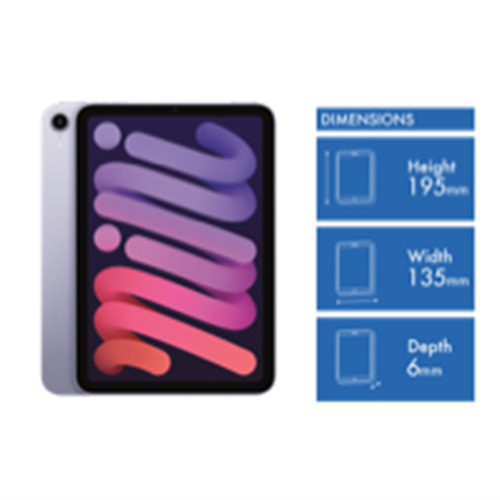All-screen design with Liquid Retina display. Powerful A15 Bionic chip. Now in four beautiful colours. Go from inspiration to creation - any-time anywhere. Gorgeous all-screen design with an 8.3-inch Liquid Retina display that fits in the palm of your hand(1). And Apple Pencil now attaches magnetically to the side ready for all those spur-of-the-moment moments(2). Faster performance. The new A15 Bionic chip and all-day battery life let you work create and play wherever life takes you(3). Edit photos and videos play graphics-intensive games and experience unreal AR. Enjoy more natural video calls with the 12MP Ultra-Wide front camera and Centre Stage. Shoot vivid photos record 4K video or scan a document with the 12MP Wide back camera. iPad mini now supports the second-generation Apple Pencil which attaches magnetically and charges wirelessly. And a colourful Smart Folio protects iPad mini and folds into a stand(2). iPadOS is powerful and easy to use straight out of the box. And with over a million apps on the App Store designed just for iPad you'll find the right app for anything you want to do(4). DISCLAIMERS: (1) The displays have rounded corners. When measured diagonally as a rectangle the iPad Pro 12.9-inch screen is 12.9 inches the iPad Pro 11-inch screen is 11 inches the iPad Air (4th generation) screen is 10.86 inches and the iPad mini (6th generation) screen is 8.3 inches. Actual viewable area is less. (2) Accessories sold separately. (3) Battery life varies by use and configuration; see apple.com/au/batteries for more information. (4) Apps are available on the App Store. Title availability is subject to change.