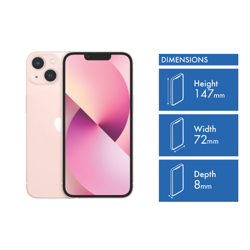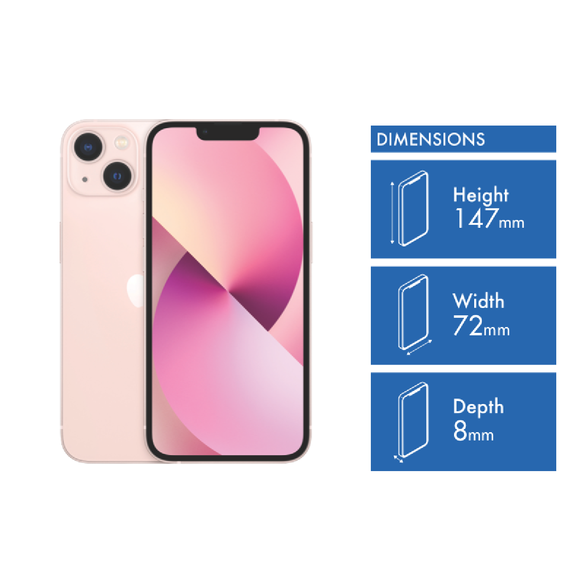 A remarkably bright display in a durable design. Hollywood-worthy video shooting made easy. A lightning-fast chip. And a big boost in battery life you'll notice every day. A more vivid OLED display that's both easier to see in full sunlight and power-efficient. With a durable design that's water and dust resistant(4). Automatically create beautiful depth effects and focus transitions in your videos. Bring a new level of storytelling to the scenes you shoot. A huge upgrade for better photos and videos. More light captured with the Wide camera. Sensor-shift optical image stabilisation. And more detail in dark areas of your photos with the Ultra Wide camera. A big boost in battery life you'll notice every day. That means more time to watch play and do more of what you love. Even on iPhone 13 mini. A15 Bionic powers graphics-intensive games and new camera features like Cinematic mode and Photographic Styles. And it's more efficient helping deliver longer battery life. Everything happens so much faster on 5G(3). It's fast enough for multiplayer gaming and more. And Smart Data mode automatically saves battery power when you don't need all that speed. DISCLAIMERS: )1)Data plan required. 5G is available in selected markets and through selected carriers. Speeds vary based on site conditions and carrier. For details on 5G support contact your carrier and see apple.com/au/iphone/cellular. (2)The display has rounded corners that follow a beautiful curved design and these corners are within a standard rectangle. When measured as a standard rectangular shape the screen is 6.06 inches diagonally. Actual viewable area is less. (3)Battery life varies by use and configuration; see apple.com/au/batteries for more information.(4)iPhone 13 is splash- water- and dust-resistant and was tested under controlled laboratory conditions with a rating of IP68 under IEC standard 60529 (maximum depth of 6 metres for up to 30 minutes). Splash water and dust resistance are not permanent conditions and resistance might decrease as a result of normal wear. Do not attempt to charge a wet iPhone; refer to the user guide for cleaning and drying instructions. Liquid damage is not covered under warranty but you might have rights under consumer law. (5)Some features may not be available in all countries or all areas. (6)Accessories are sold separately.