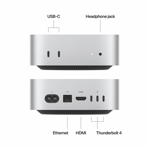 The far mightier the way tinier this Mac mini with M4 chip 10-core GPU 16GB 256GB MU9D3X/A measuring just 5 by 5 inches of pure power. Redesigned around Apple silicon to unleash the full speed and capabilities of the spectacular M4 chip.With only 5 by 5 inches in size Mac mini is designed to fit perfectly under a monitor and is easy to place just about anywhere. You can get connected with Thunderbolt HDMI and Gigabit Ethernet ports on the back and for the first time front-facing USB-C ports and a headphone jack.The powerful M4 chip delivers spectacular performance so everything feels fast and fluid.Apple Intelligence is coming December 2024 (1) it helps you write express yourself and get things done effortlessly. With groundbreaking privacy protections it gives you peace of mind that no-one else can access your data not even Apple.All your favourites including Microsoft Excel Adobe Photoshop and Zoom run lightning-fast in macOS with Apple Silicon (2).Mac works like magic with your other Apple devices. View and control what s on your iPhone from your Mac with iPhone Mirroring (3) you can copy something on iPhone and paste it on Mac. Send texts with Messages or use your Mac to make and answer FaceTime calls (4).Every Mac comes with robust defences against viruses and malware - as the privacy and security system are built in. If your Mac is lost or stolen Find My can help you get it back. FileVault makes sure your files are encrypted so others cannot access them. And free security updates help keep your Mac protected.Disclaimers:Configurable options are available.(1) Apple Intelligence is available in beta on all Mac models with M1 and later with Siri and device language set to US English as a macOS Sequoia update. English (Australia Canada Ireland New Zealand South Africa UK) language support available December 2024. Some features and support for additional languages like Chinese English (India Singapore) French German Italian Japanese Korean Portuguese Spanish Vietnamese and others will be coming over the course of the next year.(2) Apps are available on the App Store. Software and content may be sold separately. Title availability is subject to change.(3) Available on Mac computers with Apple silicon and Intel-based Mac computers with a T2 Security Chip. Requires that your iPhone and Mac are signed in with the same Apple Account using two-factor authentication your iPhone and Mac are near each other and have Bluetooth® and Wi-Fi turned on and your Mac is not using AirPlay or Sidecar. Some iPhone features (such as camera and microphone) are not compatible with iPhone Mirroring.(4) FaceTime is not available in all countries or regions.