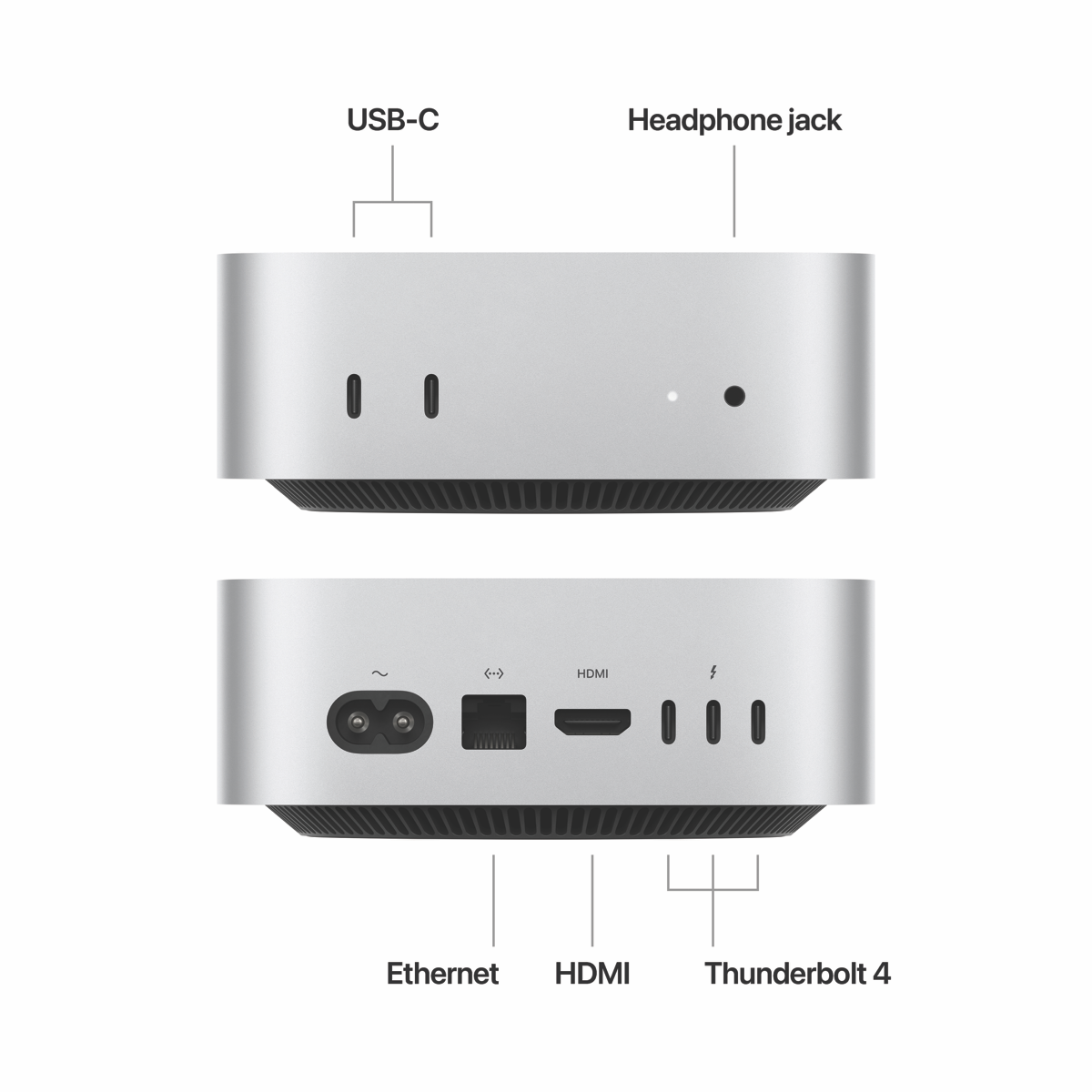 The far mightier the way tinier this Mac mini with M4 chip 10-core GPU 24GB 512GB MCYT4X/A measuring just 5 by 5 inches of pure power. Redesigned around Apple silicon to unleash the full speed and capabilities of the spectacular M4 chip.With only 5 by 5 inches in size Mac mini is designed to fit perfectly under a monitor and is easy to place just about anywhere. You can get connected with Thunderbolt HDMI and Gigabit Ethernet ports on the back and for the first time front-facing USB-C ports and a headphone jack.The powerful M4 chip delivers spectacular performance so everything feels fast and fluid.Apple Intelligence is coming December 2024 (1) it helps you write express yourself and get things done effortlessly. With groundbreaking privacy protections it gives you peace of mind that no-one else can access your data not even Apple.All your favourites including Microsoft Excel Adobe Photoshop and Zoom run lightning-fast in macOS with Apple Silicon (2).Mac works like magic with your other Apple devices. View and control what s on your iPhone from your Mac with iPhone Mirroring (3) you can copy something on iPhone and paste it on Mac. Send texts with Messages or use your Mac to make and answer FaceTime calls (4).Every Mac comes with robust defences against viruses and malware - as the privacy and security system are built in. If your Mac is lost or stolen Find My can help you get it back. FileVault makes sure your files are encrypted so others cannot access them. And free security updates help keep your Mac protected.Disclaimers:Configurable options are available.(1) Apple Intelligence is available in beta on all Mac models with M1 and later with Siri and device language set to US English as a macOS Sequoia update. English (Australia Canada Ireland New Zealand South Africa UK) language support available December 2024. Some features and support for additional languages like Chinese English (India Singapore) French German Italian Japanese Korean Portuguese Spanish Vietnamese and others will be coming over the course of the next year.(2) Apps are available on the App Store. Software and content may be sold separately. Title availability is subject to change.(3) Available on Mac computers with Apple silicon and Intel-based Mac computers with a T2 Security Chip. Requires that your iPhone and Mac are signed in with the same Apple Account using two-factor authentication your iPhone and Mac are near each other and have Bluetooth® and Wi-Fi turned on and your Mac is not using AirPlay or Sidecar. Some iPhone features (such as camera and microphone) are not compatible with iPhone Mirroring.(4) FaceTime is not available in all countries or regions.