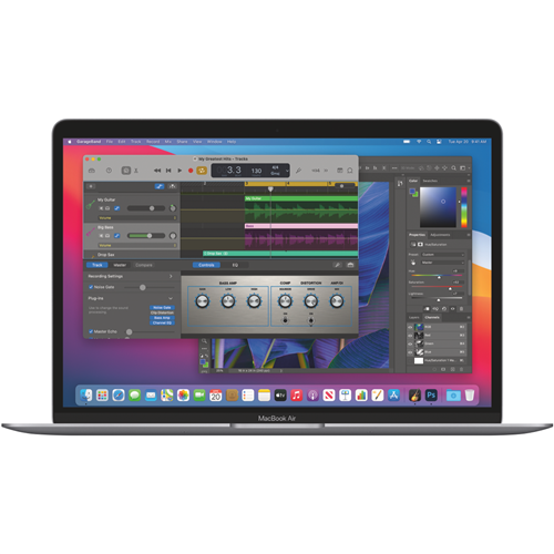 Power. It's in the Air. It's here. Apple's first chip designed specifically for Mac. Packed with an astonishing 16 billion transistors the Apple M1 system on a chip (SoC) integrates the CPU GPU Neural Engine I/O and so much more onto a single tiny chip. With incredible performance custom-engineered technologies and industry-leading power efficiency(1) M1 is not just a next step for Mac - it's another level entirely. M1 has the fastest CPU Apple has ever made. With that kind of processing speed MacBook Air can take on new extraordinarily intensive tasks like professional-quality editing and action-packed gaming. But the 8-core CPU on M1 isn't just up to 3.5x faster than the previous generation(2) - it balances high-performance cores with efficiency cores that can still crush everyday jobs while using just a tenth of the power. Disclaimers: (1) Testing conducted by Apple in October 2020 using preproduction 13-inch MacBook Pro systems with the Apple M1 chip and 16GB of RAM. Performance per watt refers to the ratio of peak CPU performance to average power consumed using selected industry-standard benchmarks. Comparison made against high-performing CPUs for notebooks and desktops commercially available at the time of testing. Performance tests are conducted using specific computer systems and reflect the approximate performance of MacBook Pro. (2) Testing conducted by Apple in October 2020 using preproduction MacBook Air systems with the Apple M1 chip and an 8-core GPU as well as production 1.2GHz quad-core Intel Core i7-based MacBook Air systems all configured with 16GB of RAM and a 2TB SSD. Tested with prerelease Final Cut Pro 10.5 using a 55-second clip with 4K Apple ProRes RAW media at 4096-by-2160 resolution and 59.94 frames per second transcoded to Apple ProRes 422. Performance tests are conducted using specific computer systems and reflect the approximate performance of MacBook Air.