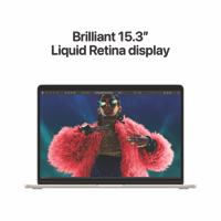 This Apple MacBook Air 15 M3 8GB 256GB - Starlight MRYR3X/A has the power that puts in the hours thanks to the M3 chip bringing even greater capabilities including up to 18 hours of battery life(1) to take it anywhere and power through work and play. Lightweight and under 1.2cm thin take a MacBook Air anywhere you go. The powerful 8-core CPU and up to 10-core GPU of the Apple M3 chip keep things running smoothly with all day battery life so you can leave the power adapter at home. The Liquid Retina display(2) supports 1 billion colours looking sharp and sounding great with a 1080p FaceTime HD camera three mics and four speakers compatible with Spatial Audio. All the best apps and programs from Microsoft 365 to Adobe Creative Cloud run lightning-fast in macOS(3). Featuring two Thunderbolt ports a headphone jack Wi-Fi 6E(4) Bluetooth 5.3 and a MagSafe charging port with capability for up to two external displays connected with the laptop lid closed. MacBook Air works like magic with other Apple devices(5) start an email on an iPhone and finish it on your Mac send text messages from Macs and much more.Disclaimers: (1) Battery life varies by use and configuration. (2) The display on the 15-inch MacBook Air has rounded corners at the top. When measured as a standard rectangular shape the screen is 15.3 inches diagonally (actual viewable area is less). (3) Apps are available on the App Store. (4) Wi-Fi 6E available in countries and regions where supported. (5) Requires iCloud and internet connection.