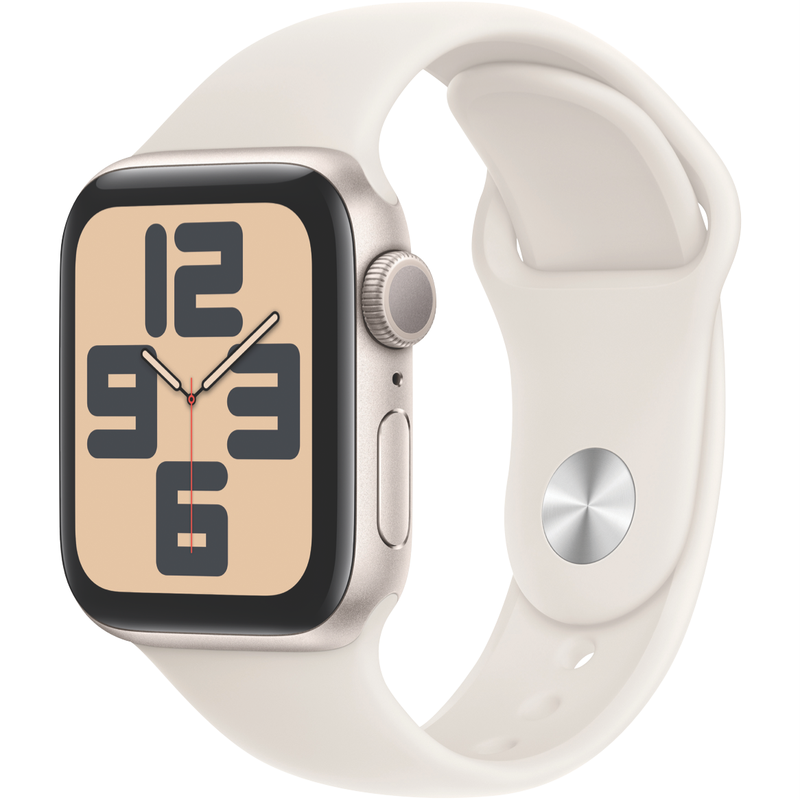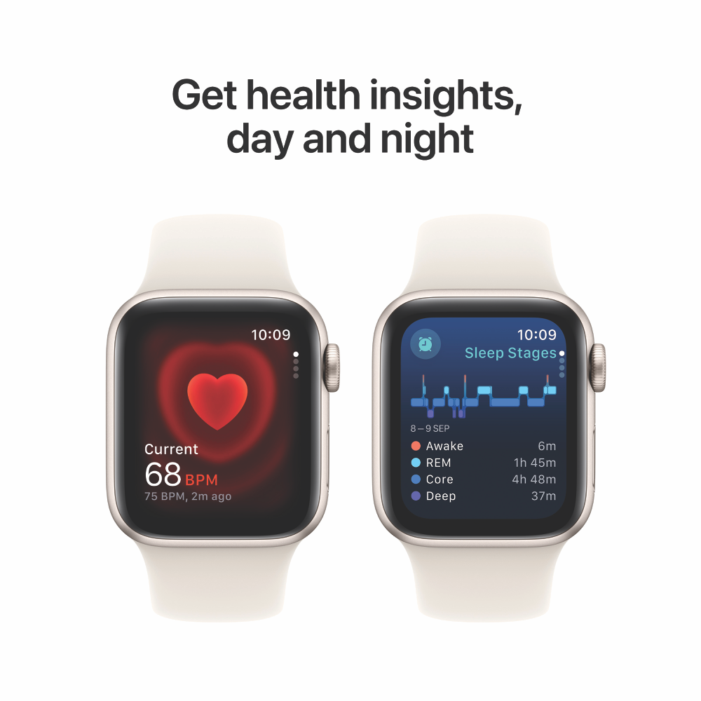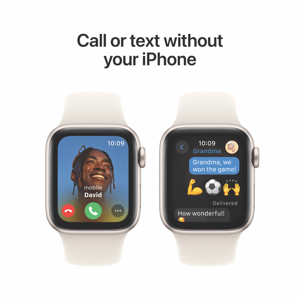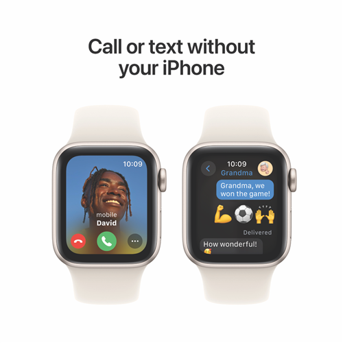 The Apple Watch SE GPS 40mm Starlight Aluminium Case with Starlight Sport Band - S/M MXEF3ZP/A has the essential features to help you stay connected active healthy and safe. It's perfect to set up with Apple Watch For Your Kids (1).All the essentials to help you be motivated and active keep connected track your health and stay safe. watchOS 11 brings more intelligence personalisation and connectivity. With features like Fall Detection(2) and enhanced workout metrics Apple Watch SE has incredible value (3).Now you can send a text take a call listen to music and podcasts use Siri or call for help with Emergency SOS(4) Apple Watch SE (GPS) works with your iPhone or Wi-Fi to keep you connected.Get insights into your health including notifications if you have an irregular heart rhythm or an unusually high or low heart rate(5) Get help when you need it with Fall Detection(2) Crash Detection and Emergency SOS (4). You can also automatically notify loved ones when you arrive at your destination with Check In (6) features.It works seamlessly with your Apple devices and services (7). Unlock your Mac automatically find your devices easily and pay with Apple Pay through your watch.50-metre water resistance (8).With watch bands in a range of styles materials and colours and fully customisable watch faces you can change your watch to fit your mood or the moment and a colour-matched back case made with a production process that reduces its carbon emissions.The Workout app gives you a range of ways to train plus advanced metrics for more insights into your workout performance and Apple Watch comes with three months of Apple Fitness+ free (9).Apple Watch SE (2nd generation) is carbon neutral when paired with selected bands. Disclaimers:Apple Watch SE requires iPhone XS or later with iOS 18 or later.(1) Not all features will be available if Apple Watch is set up through Apple Watch For Your Kids. Carrier plan required for cellular service. Contact your service provider for more details.(2) Fall Detection updates are available on Apple Watch Series 4 and later with watchOS 8 and later.(3) Features subject to change. Some features applications and services may not be available in all regions or all languages. See apple.com/au/watchos/feature-availability for complete list.(4) Emergency SOS requires a mobile network connection or Wi-Fi calling with an internet connection from your Apple Watch or nearby iPhone.(5) Irregular rhythm notification requires the latest version of watchOS and iOS. It is not intended for use by people under 22 years old or those who have been previously diagnosed with atrial fibrillation. Always follow instructions for use. The device is not intended to replace traditional methods of diagnosis. Consult a doctor if atrial fibrillation is detected or if you have symptoms of a heart attack stroke or other cardiovascular conditions.(6) Check In requires watchOS 11 or later for the sender and iOS 17 or later for the recipient. Location sharing is not supported in South Korea and might be unavailable in other regions due to local laws.(7) Apple Watch SE requires iPhone Xs or later with iOS 18 or later.(8) Apple Watch SE has a water resistance rating of 50 metres under ISO standard 22810:2010. This means that it may be used for shallow-water activities like swimming in a pool or ocean. Apple Watch SE should not be used for scuba diving or waterskiing or other activities involving high-velocity water or submersion below shallow depth. Water resistance is not a permanent condition and can diminish over time.(9) New subscribers only. A$14.99 per month after trial. Only one offer per Apple Account and only one offer per family if you re part of a Family Sharing group regardless of the number of devices you or your family purchase. Offer good for three months after eligible device activation. Plan automatically renews until cancelled. (10) Carrier plan required for cellular service. Contact your service provider for more details. Connection may vary based on network availability. International roaming is not supported.