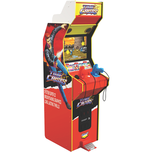 Get ready to blast into action with the Arcade1Up Time Crisis Deluxe Edition Arcade Machine! This awesome arcade machine brings the classic Time Crisis game right into your home. You'll love the authentic arcade controls and immersive gameplay. It's got everything you need for hours of fun including a light-up marquee dual speakers and a 17-inch color LCD screen. Plus it comes with a 1-year manufacturer's warranty for extra peace of mind. The TMC-A-300111 model is built to last so you can enjoy this thrilling game for years to come.