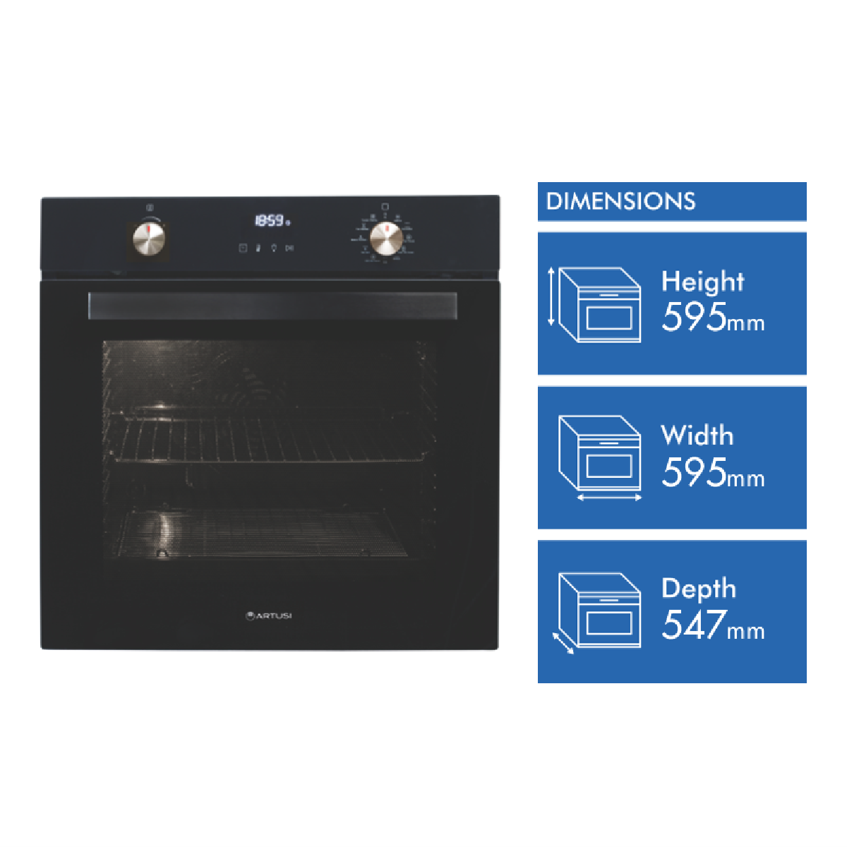 ARTUSI 60cm Built In Pyrolytic Oven Black Glass
