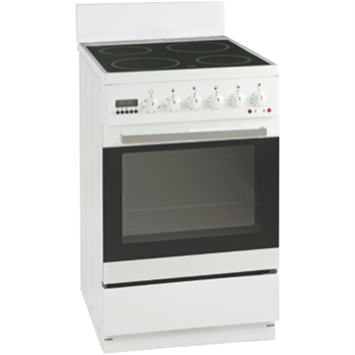 Bring home cooking convenience with the sleek 60cm wide Artusi AFC607W upright cooker. With a generous 56 litre capacity this freestanding electric oven has the space you need to prepare delicious family meals. Its smooth white finish and stainless steel accents add an elegant touch to your kitchen. Whip up perfect roasts bakes and grills with 7 versatile oven functions like fan grill conventional and bottom heat. The triple-glazed glass door retains heat while letting you monitor cooking progress. Four rapid ceramic cooktop burners give you precision control for simmering sauces or stir-fries. This oven comes with handy accessories like two chrome shelves a baking tray and a grill rack. The durable black enamel interior resists stains and cleans up easily. With a 2-year warranty the AFC607W upright cooker delivers reliable performance you can count on. The manufacturer's part number for this product is AFC607W. Bring home delicious meals with the Artusi 60cm upright cooker today.