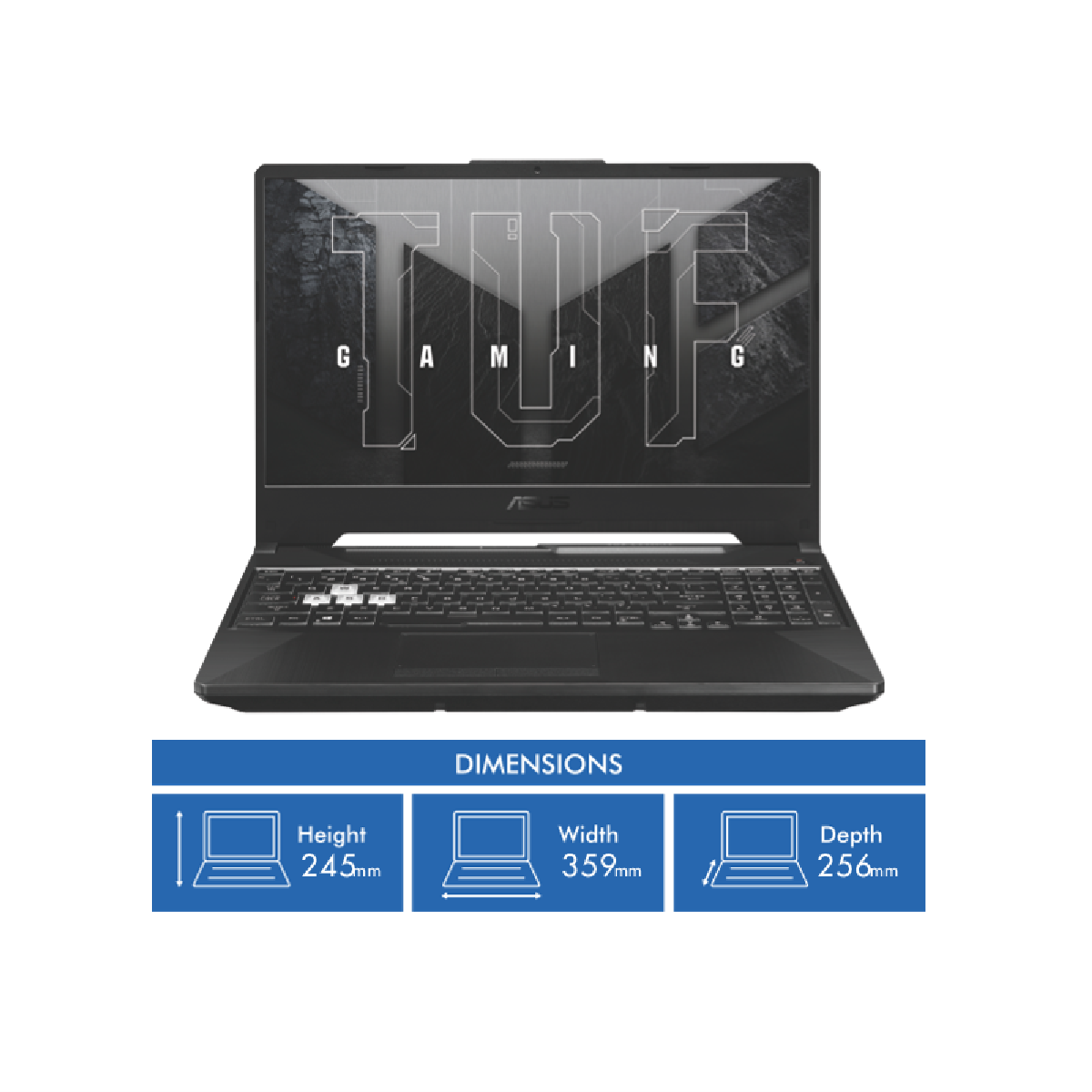 Get ready to game on the go with the Asus TUF A15 15.6 Gaming Laptop. This powerful machine boasts a lightning fast AMD Ryzen 5 7535HS processor and NVIDIA GeForce RTX 2050 graphics card to deliver smooth high-fps gameplay whether you're battling enemies in an RPG or racing towards the finish line. The 15.6 Full HD IPS-level display immerses you in vivid visuals while the gaming-focused keyboard with RGB backlighting allows you to play into the night. With 16GB RAM and 512GB SSD storage you'll have plenty of space to install all your favorite games and apps. Weighing in at just 2.3kg the durable military-grade chassis with a graphite black finish means you can take this laptop anywhere your gaming adventures lead. Connect via Wi-Fi 6 HDMI USB 3.2 Gen 1 USB 3.2 Gen 2 Type-C and more. Light up your gaming world with the Asus TUF A15. This Asus laptop's manufacturer part number is FA506NF-HN006W.