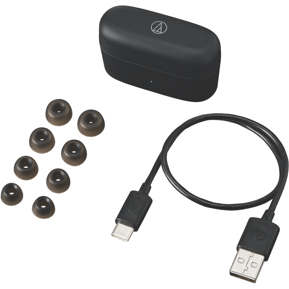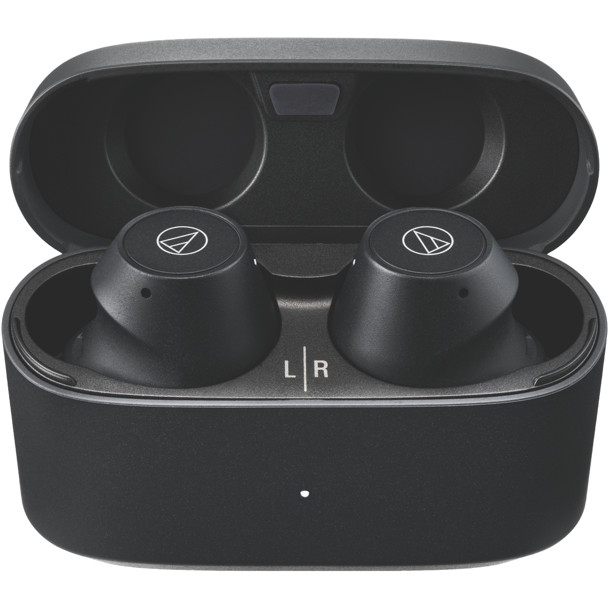 The ATH-CKS30TW+BK are True Wireless Active noise cancelling earbuds. These pocket-sized truly wireless headphones offer high resolution sound for realistic music and movies. For beats that make your whole body move activate the ultra-low-frequency equalizer to enjoy the richest depths of your music. Enjoy up to 6.5 hours of use from each earbud when fully charged even with noise-cancelling turned on or 17.5 hours of use with both the headphones and charging case fully charged. Turn noise cancelling off to get up to 7.5 hours of use from each earbud or 20 hours of use with the charging case. Taking you from morning workouts to evening relaxation these securely-fitting waterproof earbuds feature a snug fit to keep the bass intact and feel comfortable all day and should they ever be misplaced our handy Out of Range Alert keeps you in the loop.