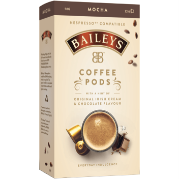 Wake up to the rich aroma of Baileys NC Mocha coffee with this 10 pack of single-serve coffee pods. These coffee capsules contain freshly ground roasted coffee beans infused with Baileys' signature mocha flavor and a touch of alcohol (0.01%) for a delicious morning brew. Pop one of these pods into your compatible single-serve coffee maker and enjoy a cafe-quality cup of coffee with smooth mocha undertones. The perfect way to start your day with a sweet indulgence these Baileys coffee pods deliver full-bodied flavor in a convenient format. Their single-serve design allows you to quickly brew one fresh cup at a time. Savor the chocolatey notes and subtle kick of Baileys as you sip your morning mocha coffee. With 10 pods per pack you'll have plenty of these rich mocha coffee capsules to enjoy all month long. Treat yourself to a little something special each day. The manufacturer's part number for this product is 200527. Check out these Baileys mocha coffee pods today for a delicious addition to your morning routine.