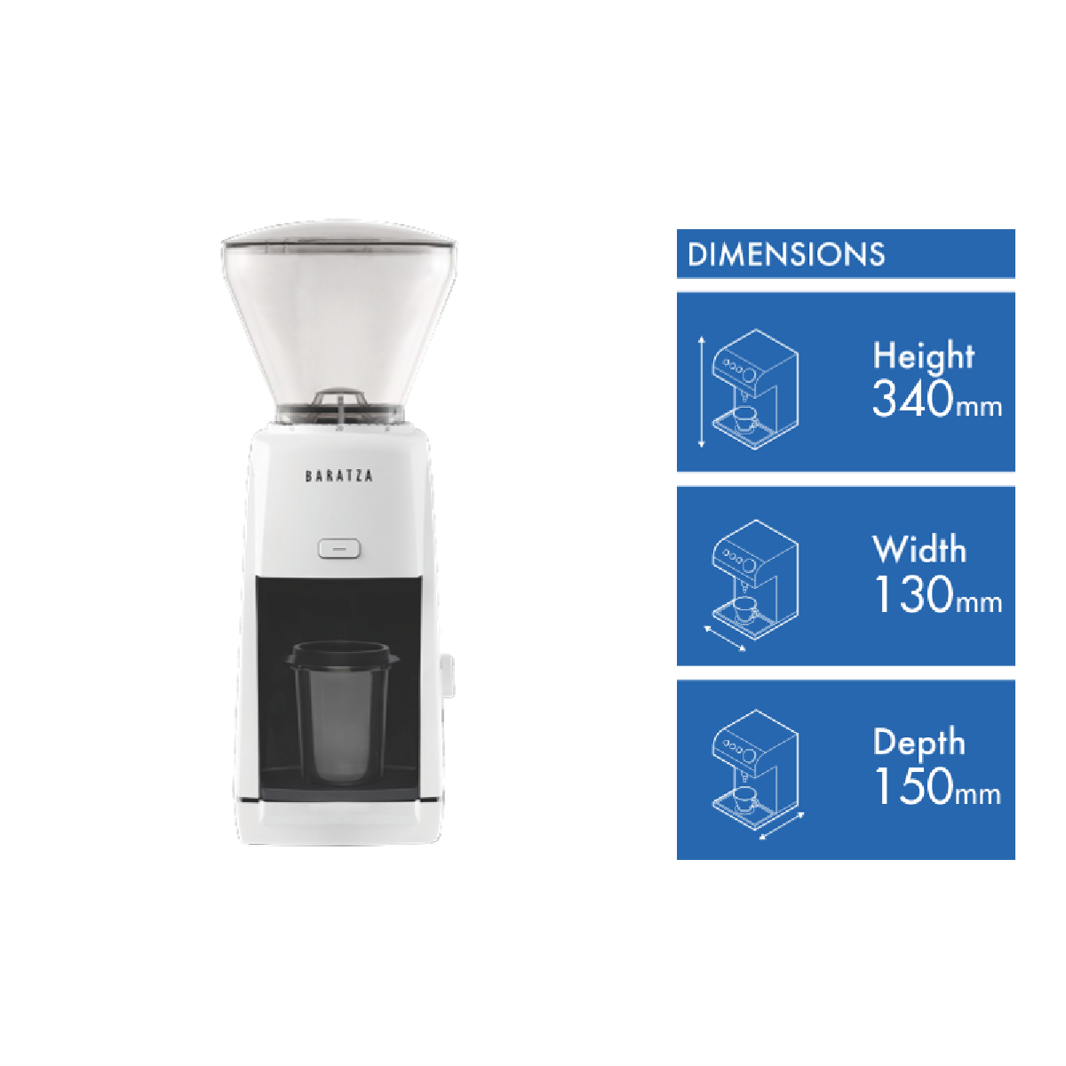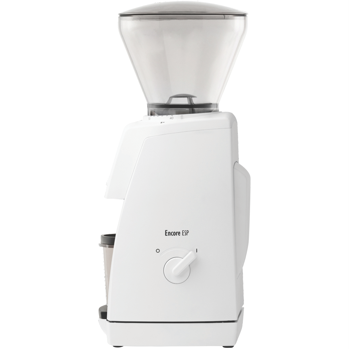 Take your morning coffee to the next level with the Baratza Encore ESP 230V Coffee Grinder. This precision calibrated coffee grinder finished in a sleek white provides consistently ground coffee for true flavor extraction. With 40mm steel burrs and advanced DC motor it grinds beans with ease while keeping noise to a minimum. Its dual-range system features 40 precise grind settings to help you achieve your ideal grounds from ultrafine for espresso to coarse for French Press. The convenient 300g bean hopper allows you to grind just the right amount. A quick-release system lets you swap burrs with no hassle. Engineered for durability and equipped with a 2 year warranty this coffee grinder will be your partner in the quest for exquisite coffee for years to come. The manufacturer's part number for this product is ZCG495WHT2IAN1A. Discover the possibilities of expertly ground coffee with the Baratza Encore ESP.