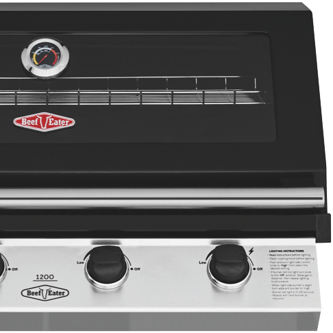 Cook up in style with the BeefEater 1200 Series Stainless Steel 4 Burner Built-in LPG BBQ with Cast Iron Burners & Grills. Sear and seal quickly with cast iron 15 megajoule burners. Evenly grill and bake with the rust resistant cast iron cooktop. Keep an eye with the large viewing window and built-in temperature gauge to ensure the lid stays closed and roasts retain their moistness. It has a warming tray that rolls away when not in use and quartz one press start for simple ignition first time every time. The flame tamer prevents drippings from hitting the exposed fire minimising burning. Built in oil channels assist in keeping the whole setup clean and minimising scrubbing after the delicious barbeque.