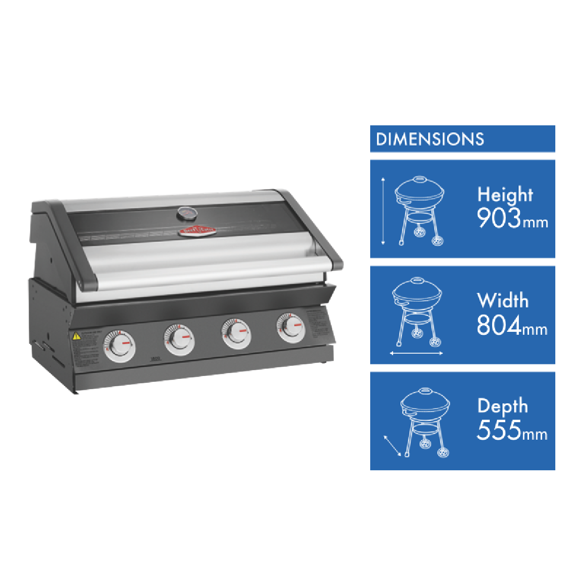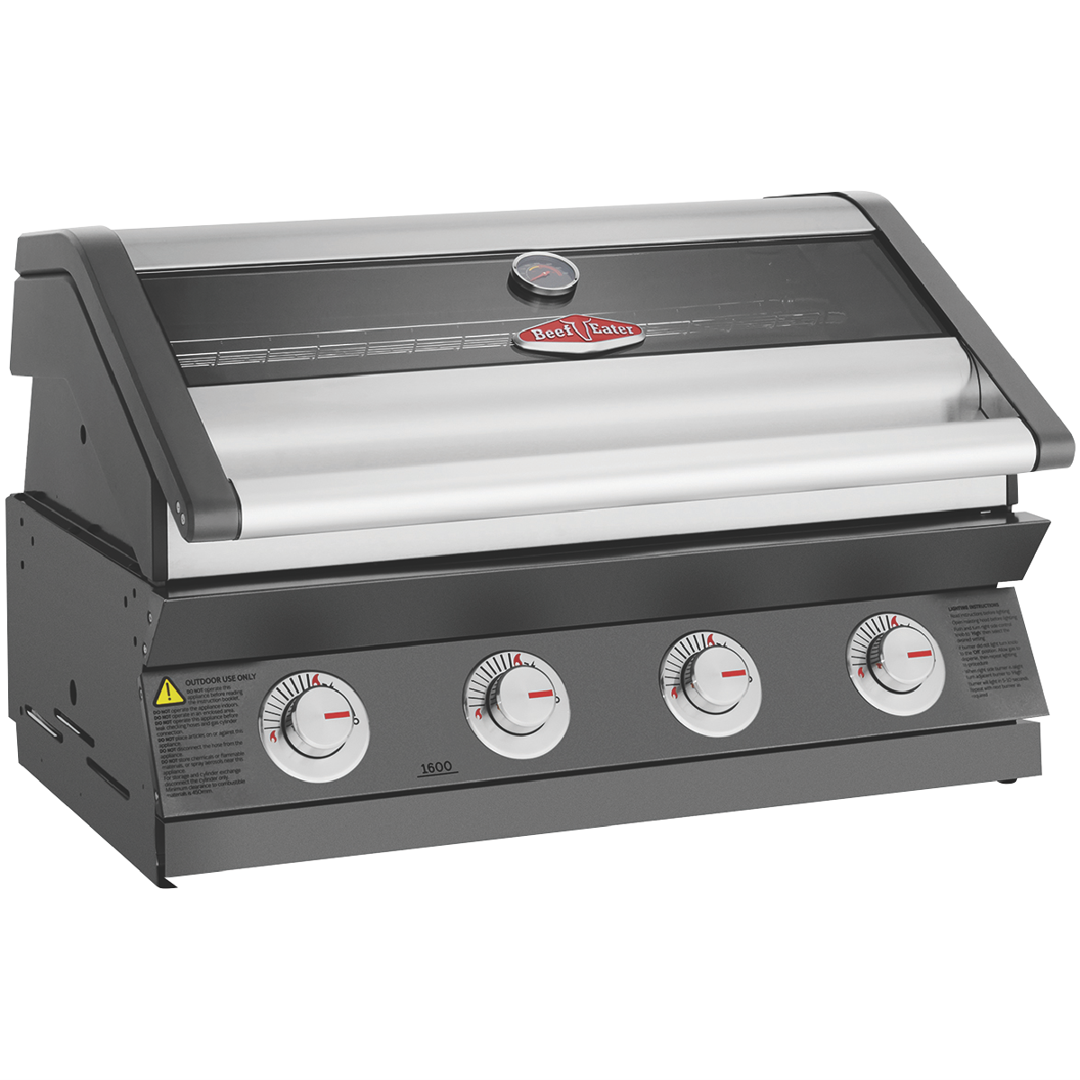This Beefeater 1600 Series Dark 4 Burner Built In BBQ w/ Cast Iron Burners & Grills BBG1640DA is one of the most durable flexible and efficient cooking systems available. Cast iron heats quickly maintains consistency and lasts a very long time. With 17MJ of power in each burner turning the heat up or down is precise and gives choice in what and how you cook it. Stainless steel vaporisers efficiently disperse the flames across the grill and plate surfaces whilst reducing flare ups. Cook up a feast for many for years to come on this spacious and durable cooktop. Made from cast iron the cooking surface doesn't chip and is rust resistant holding its warmth evenly for the best cooking experience. Keep an eye on what s cooking without lifting the lid using the built in temperature gauge and full width glass viewing window to check how those sausages or brisket are doing. The chrome wire elevated cooking rack keeps food warm or can be used as another cooking area. Start cooking quickly and easily with the quartz ignition system for first time every time sparking up. Built to withstand high heat over time the burner box is built of high grade enamel. Fully seam welded throughout moisture and grease don't get into the gaps creating rust. Designed for an easy cleanup the hotplate has raised sides preventing grease and oil over spilling drawing it instead to the plate opening and into the front access catchment tray.