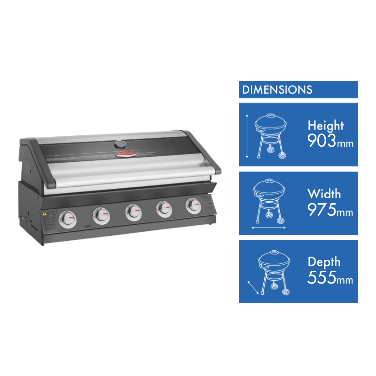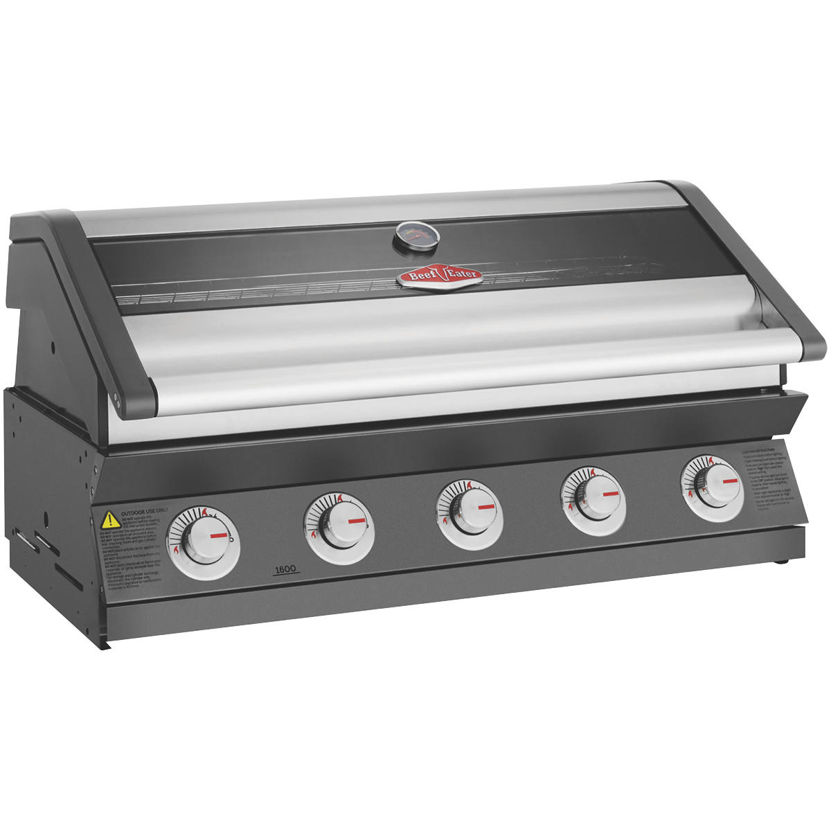This BeefEater 1600 Series Dark 5 Burner Built In BBQ w/ Cast Iron Burners & Grills BBG1650DA is one of the most durable flexible and efficient cooking systems available. Cast iron heats quickly maintains consistency and lasts a very long time. With 17MJ of power in each burner turning the heat up or down is precise and gives choice in what and how you cook it. Stainless steel vaporisers efficiently disperse the flames across the grill and plate surfaces whilst reducing flare ups. Cook up a feast for many for years to come on this spacious and durable cooktop. Made from cast iron the cooking surface doesn't chip and is rust resistant holding its warmth evenly for the best cooking experience. Keep an eye on what s cooking without lifting the lid using the built in temperature gauge and full width glass viewing window to check how those sausages or brisket are doing. The chrome wire elevated cooking rack keeps food warm or can be used as another cooking area. Start cooking quickly and easily with the quartz ignition system for first time every time sparking up. Built to withstand high heat over time the burner box is built of high grade enamel. Fully seam welded throughout moisture and grease don't get into the gaps creating rust. Designed for an easy cleanup the hotplate has raised sides preventing grease and oil over spilling drawing it instead to the plate opening and into the front access catchment tray.