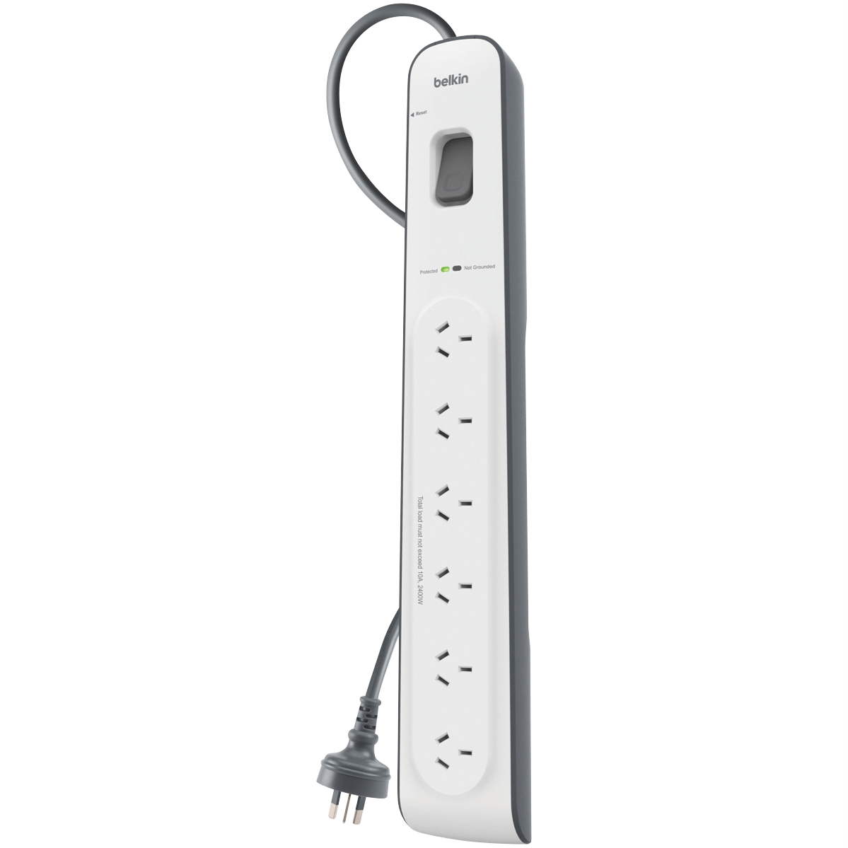 Power up your home office or entertainment center with the Belkin 6 Port Surge Protector. This essential power board keeps your devices protected and powered up with six widely spaced outlets and surge protection up to 1080 joules. The two metre cord provides flexibility for optimal placement while the compact design fits effortlessly into any space. With robust safety features like overload and overheating protection you can plug in computers printers modems TVs game consoles and more with complete peace of mind. The manufacturer's part number for this product is BSV603AU2M. For reliable surge protection for all your devices look no further than this quality power board from Belkin.