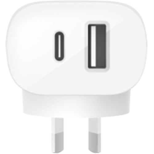 Power up your devices faster than ever with the Belkin BOOSTCHARGE Dual Wall Charger. This innovative 37W charger features Power Delivery technology to deliver an optimized charge to your phone or tablet. The sleek compact design includes dual USB-C ports so you can charge two devices simultaneously. Engineered for performance and safety the Belkin charger provides efficient and fast charging without overheating your devices. The universal compatibility is ideal for powering up the latest iPhone Android iPad or other USB-C enabled gadgets. With 37 watts of power you'll get a quick boost when you need it most. Whether you're home or away this portable charger makes powering up a breeze. The foldable plug tucks away neatly for travel while the durable construction ensures long-lasting performance. Bring reliable speedy charging power wherever you go with Belkin's innovative wall charger. It's the ultimate charging companion for your modern devices.Experience next-level charging speed with the safety and performance you expect from Belkin. The manufacturer's part number for this product is WCB007AUWH.