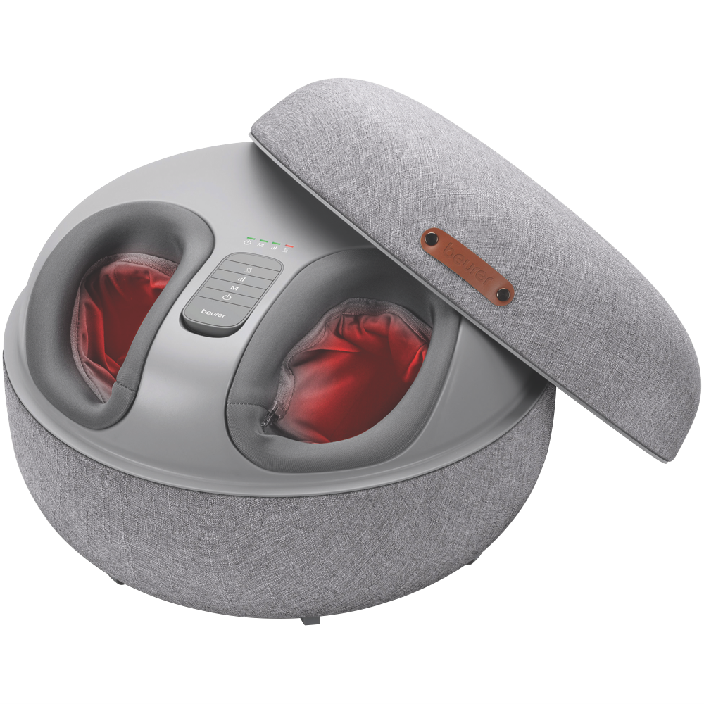 Experience the ultimate in foot massage relaxation with the Beurer 2 In 1 Shiatsu Foot Massager. Crafted with a luxe grey exterior this innovative massager utilizes advanced air compression and pressure massage technology to deliver a soothing shiatsu massage that will leave your feet feeling refreshed and rejuvenated. The massager features three intensity levels of air compression to gently squeeze and massage your feet as well as a shiatsu massage function to boost circulation and promote relaxation and regeneration. The easy-to-use wireless remote allows you to control the massager without bending down while the function display with colored LEDs lets you know the selected settings at a glance. Designed for comfort the massager has a removable and washable inner cover so you can keep it clean between uses. With a modern profile and advanced massage technology the Beurer Foot Massager is the perfect way to pamper tired aching feet after a long day. Don't miss out on the soothing relaxation this massager provides - make it part of your self-care routine today. Manufacturer Part Number FM120. 3 year warranty.