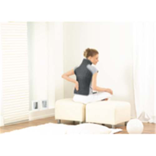 Soothe aching muscles and joints with the Beurer Back and Neck Heat Pad. This grey fleece heat pad features three temperature settings to provide customizable penetrating warmth right where you need it most. The extra-large 620mm x 420mm pad conforms nicely to fit your back neck or shoulders using the adjustable clip and hook-and-loop fastener. Just slip the heat pad in place and select your ideal heat level with the illuminated controls. The auto shut-off function turns the pad off after 90 minutes for added safety and peace of mind. With a 100W heating element this high-quality heat wrap retains warmth and delivers targeted relief. The super-soft fleece construction and 5 year warranty ensure lasting performance. Give your body the gentle enveloping warmth it craves with the Beurer Back and Neck Heat Pad. The manufacturer's part number for this product is HK53. Treat yourself to restorative warmth and comfort with this therapeutic heat pad.