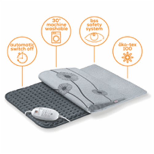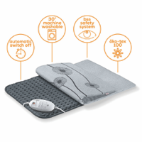 Cozy up with the Beurer Cosy XXL Personal Heat Pad for soothing warmth and comfort during chilly winter days. This large grey heat pad features a plush super soft surface for gentle heat therapy on aching muscles and joints. With rapid heat up technology and three illuminated temperature settings to choose from you can quickly dial in the perfect level of soothing warmth. The integrated safety system automatically shuts off the 100W heat pad after approximately 90 minutes so you can relax completely. Breathable and skin-friendly this personal heating pad measures a generous 600mm x 400mm providing full coverage warmth for your back hips and more. Unwind after a long day with the Beurer Cosy heat pad's rapid heating comfort. The manufacturer's part number for this product is HK125. Enjoy safe cozy warmth all winter long with this high quality personal heating pad.
