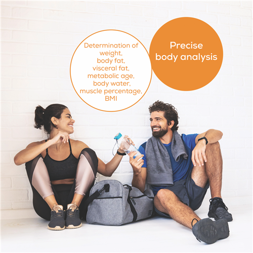 Additional Features Modern and sleek in design, Measures Body Weight, Body Fat, Body Water, Muscle Ratio, Bone Mass and Calorie Consumption (BMR), High performance accuracy to 0.1% for Body Fat, Body Water and Muscle Ratio and accuracy within 100 g for Body Weight and Bone M