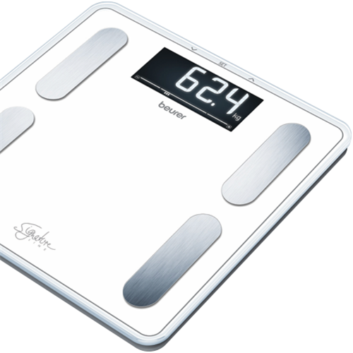Step on the scale and see your body in a whole new light with the Beurer Digital Glass Body Weight Scale. This sleek bathroom scale not only shows your weight but also provides insights into body fat body water muscle mass bone mass metabolism rate BMI and more. Crafted with 8mm thick super-white safety glass and a black XL LCD display this digital scale makes a sophisticated addition to any modern bathroom. It automatically calibrates for weights up to 200kg and recognizes up to 10 users storing personalized data to track progress over time. The scale's body analysis functionality is as useful as it is simple to use - just step on barefoot to view all your body metrics. Battery operated and equipped with auto switch-off the Beurer scale is a long-lasting bathroom essential. For precise body composition tracking choose the Beurer Digital Glass Body Weight Scale today. The manufacturer's part number for this product is BF400W.