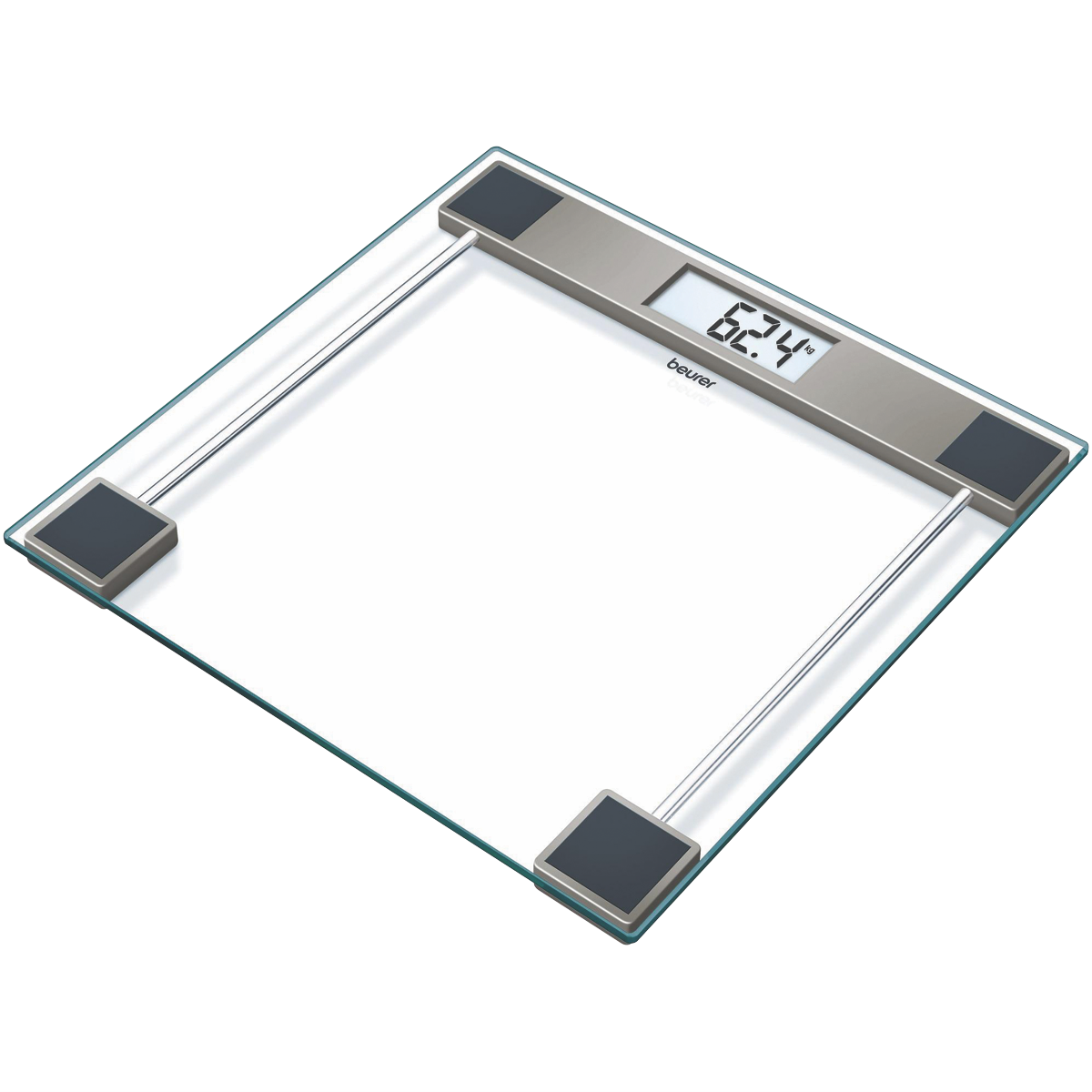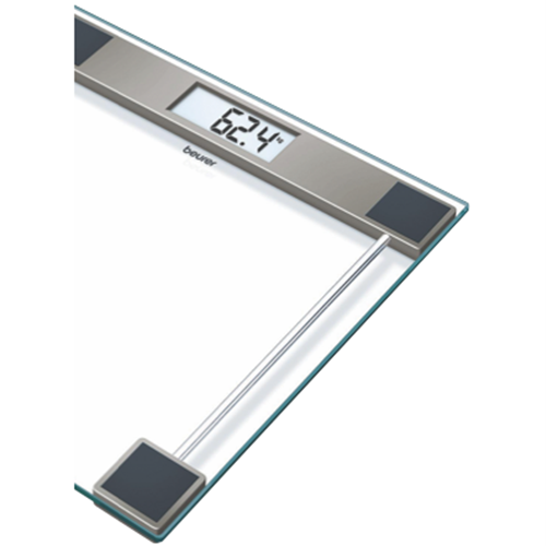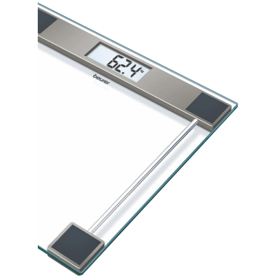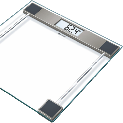 Weigh yourself with precision on this sleek digital bathroom scale from Beurer. Featuring a transparent glass platform and easy-to-read digital display this scale makes monitoring your weight simple and straightforward. The large safety glass platform offers durability while the tap-on activation lets you step on and get an accurate reading instantly. With a 150kg capacity and increments of 100g this bathroom scale is ideal for the whole family. The compact design at 100mm wide takes up minimal space in your bathroom. An auto-off function conserves battery life so you can rely on this scale every day. Keep an eye on your fitness goals with the help of this modern Beurer digital glass bathroom scale. The manufacturer's part number for this product is GS11. Learn more about this innovative product today.