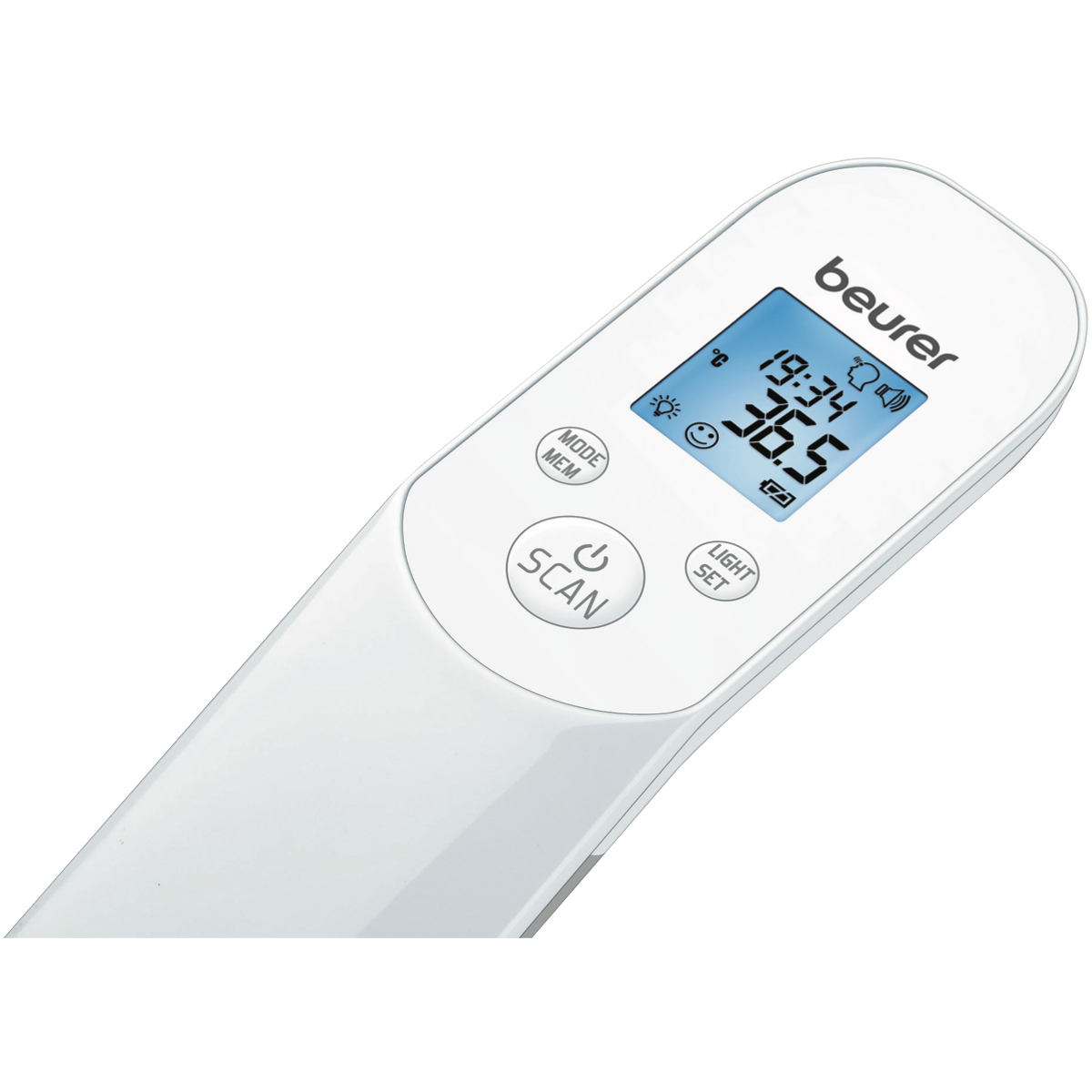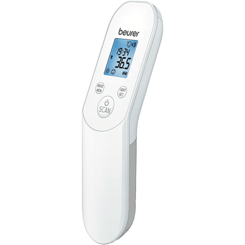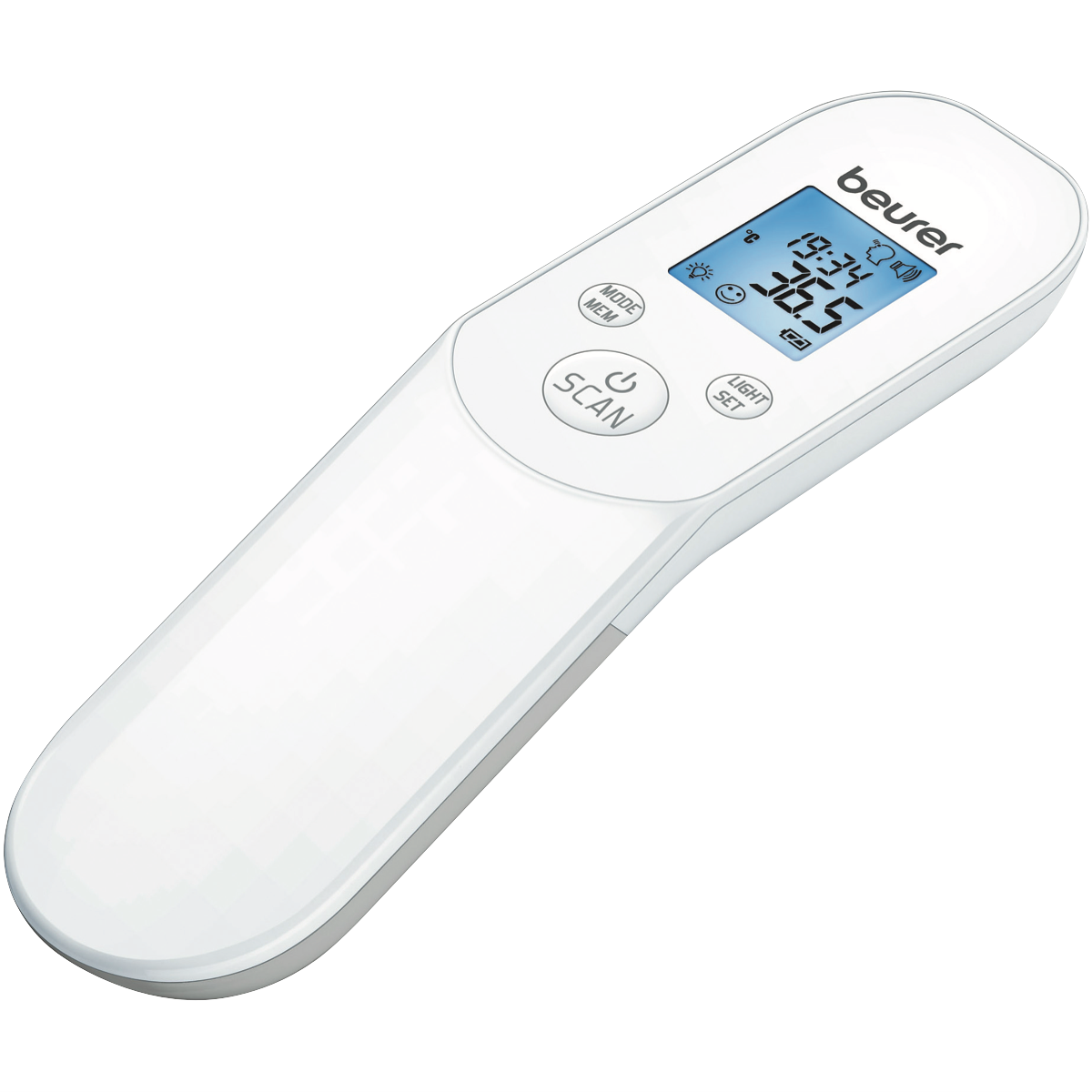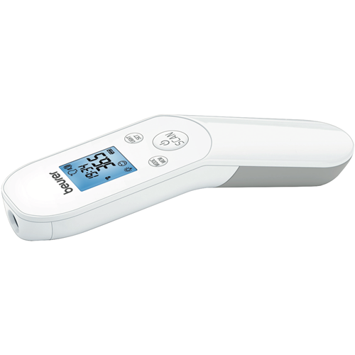 Take precise temperature readings in a flash with the Beurer Infrared Non Contact Digital Thermometer. This sleek white thermometer allows you to measure temperatures both precisely and hygienically without making any contact making it perfect for taking readings of young children. With its easy to read coloured LED display acoustic signal timer function and memory that stores up to 60 readings this thermometer takes the guesswork out of temperature taking. Additional features like the option to display readings in both Celsius and Fahrenheit provide added convenience. Lightweight and compact at just 161mm long and 67 grams the Beurer thermometer is highly portable so you can take it anywhere. Rest assured this thermometer will provide reliable service for years to come with its 5 year manufacturer's warranty. The manufacturer's part number for this product is FT85. Check out the Beurer Infrared Non Contact Digital Thermometer today for fast hygienic temperature readings.