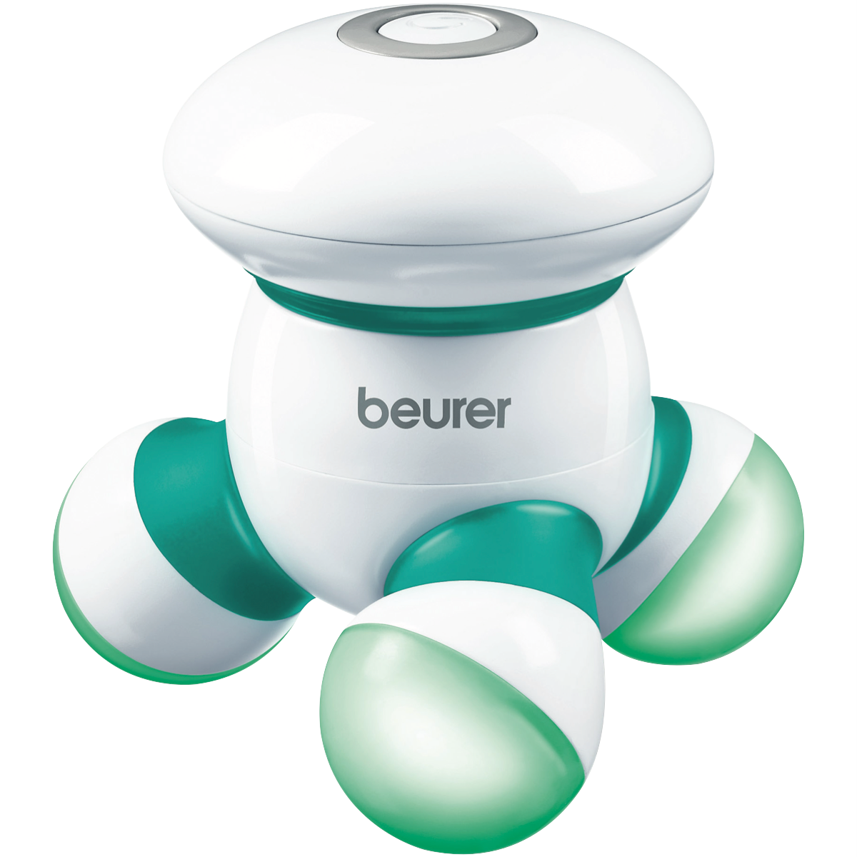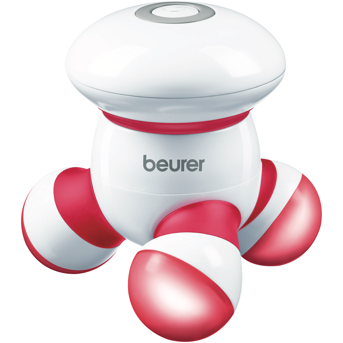 Experience soothing relaxation with the Beurer Massager Mini. This handheld massager provides a gentle tapping massage with its light and ergonomic design. The vibrant red and green colors add a modern flair while the non-slip handle ensures a secure grip during use. Three illuminated massage heads deliver a pleasant vibration massage to help relax muscles and relieve tension. Through the soothing power of vibration this massager aims to enhance your daily wellbeing. The included LED light allows you to use this massager even in low light conditions. Powered by 3 AAA batteries it is designed for portability so you can unwind anytime anywhere. This massager measures 98mm long by 98mm wide by 95mm high and weighs just 0.16kg for easy handling. Beurer offers a 3 year warranty for added peace of mind. The manufacturer's part number for this product is MG16. Bring the luxury of massage into your daily life with the Beurer Massager Mini.