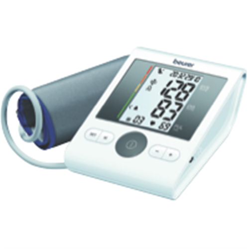 Take control of your health with the Beurer Upper Arm Blood Pressure Monitor. This easy-to-use monitor allows you to keep track of your blood pressure from the comfort of home. The fully automatic device features a large cuff that fits arm circumferences of 22 to 42cm. It detects pulse and can take continuous readings with the touch of a button. The monitor comes equipped with an arrhythmia detector and resting indicator to provide extra insight into your heart health. The crisp white monitor with large LCD display allows for easy reading of results. Monitoring blood pressure regularly helps you stay on top of your health. This monitor makes it simple with features like the cuff position control that ensures accurate positioning. Stay informed and detect issues early with the Beurer blood pressure monitor. The manufacturer's part number for this product is BM28. Take the first step to better health today.