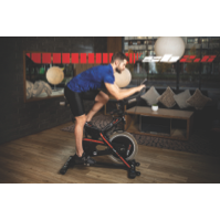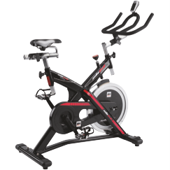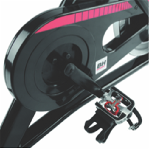 Step up your home cardio with the BH Fitness SB2.6 Spin Bike designed for intense workouts in the comfort of your own space. This exercise bike features a 22kg flywheel that provides a smooth natural ride feel whether you're simulating climbs or sprints. The LCD monitor clearly displays your workout data like time speed distance calories burned and pulse helping you stay motivated. Adjustable handlebars and seat cater to riders of different heights while the mixed pedals work with normal shoes or clip-in cycling shoes. Multiple resistance levels allow you to tailor the intensity to your fitness level. The friction brake system enables quick stops when needed. With its sturdy steel frame carved saddle and 130kg max user weight this spin bike is built to last through many high energy cardio sessions. Bring the experience of a studio class home with the SB2.6. The manufacturer's part number for this product is H9173.