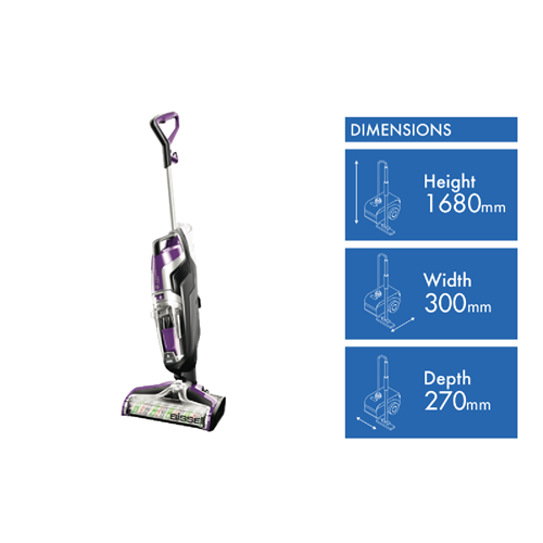 Tackle stubborn pet stains and odors with the powerful Bissell CrossWave Pet carpet cleaner. This upright vacuum features Smart-Touch controls for easy operation and a Dual Action brush roll that lifts dirt and debris while scrubbing and vacuuming your carpets in one simple step. The two-tank system keeps clean water separate from dirty water during cleaning. With a generous 828ml water tank capacity and 7.62m cord length you'll have the freedom to deep clean large areas. The included Multi-Surface Pet Brush Roll 236ml Multi-Surface Pet Cleaning Formula Rinse & Clean Out Tray Pet Hair Strainer and more provide a complete cleaning solution for homes with pets. Weighing just 5.22kg the CrossWave Pet makes cleaning and maintaining your carpets quick and easy. Backed by Bissell's 2 year warranty this carpet cleaner will keep your floors looking their best for years to come. The manufacturer's part number for this product is 2225F. Discover how the Bissell CrossWave Pet can refresh your home today.