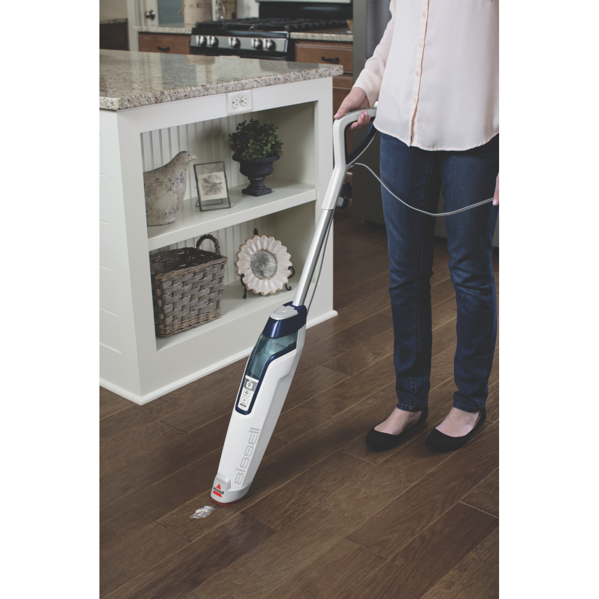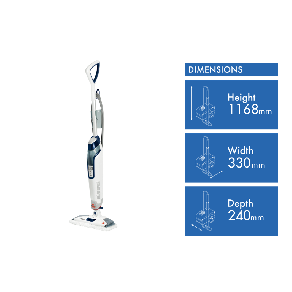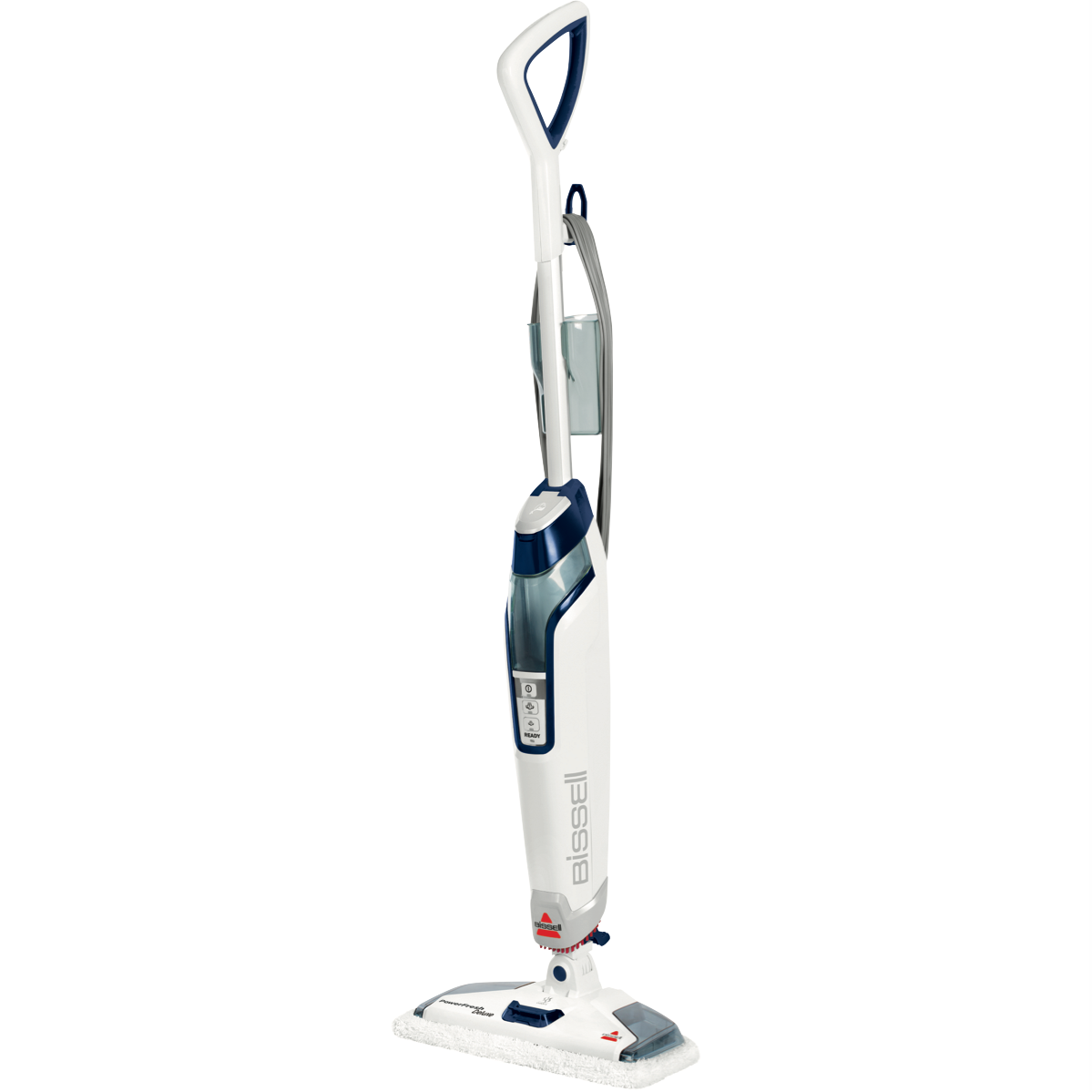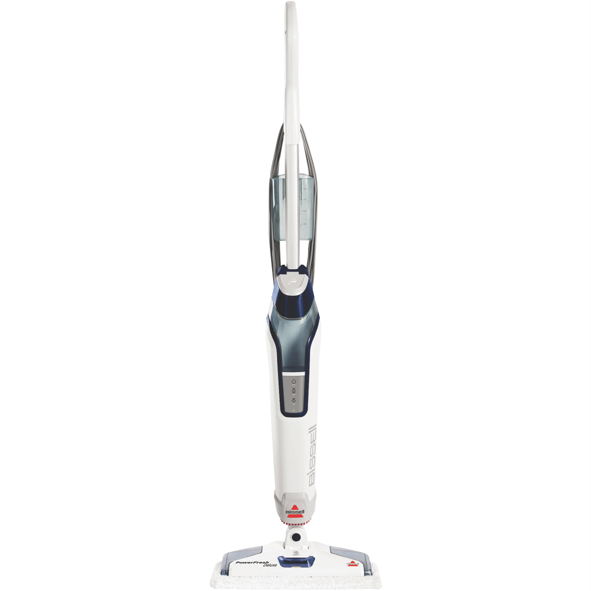 The Bissell PowerFresh Deluxe steam mop is the perfect cleaning solution for sealed hard floors. With a large 561ml water tank capacity this lightweight 2.81kg steam mop makes quick work of cleaning and sanitizing your floors. The extra-long 7.62m power cord allows you to maneuver easily around furniture and reach into corners and edges. Simply fill the tank plug it in and get cleaning in minutes. The PowerFresh Deluxe features a unique steam-on-demand trigger that allows you to control the amount of steam released. This helps conserve energy and allows you to customize the steam output for sealed hard floors. The triangular mop head easily removes stuck-on messes while the flip-down easy scrubber gives extra scrubbing power when needed. Enjoy sparkling clean floors without the use of harsh chemicals. This steam mop's natural steam cleaning kills 99.9% of germs and bacteria leaving your floors clean and sanitized. With a 2 year warranty you can purchase with confidence. The manufacturer's part number for this product is 1979F. Bring the power of steam cleaning into your home with the Bissell PowerFresh Deluxe today.