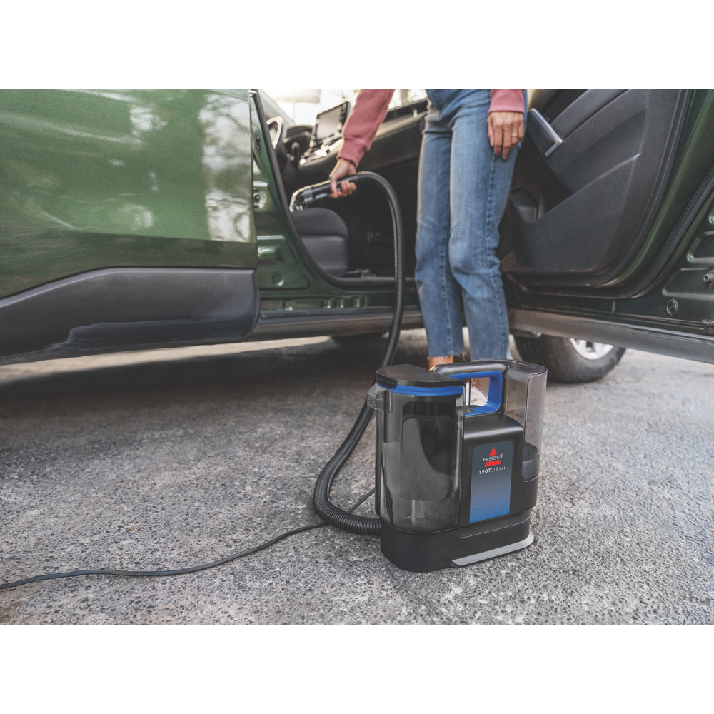 Want to tackle those pesky carpet stains without lugging out a bulky machine? The Bissell SpotClean Carpet Cleaner is your go-to solution for quick and easy spot cleaning. This compact blue and black cleaner is perfect for carpets rugs fabric upholstery and even car interiors. With a generous 950ml clean water tank and 850ml dirty water capacity you can tackle multiple spots without constant refills. The 4.5-meter cord gives you plenty of reach so you can clean those hard-to-reach areas with ease. Plus you'll have peace of mind with a 2-year warranty. Say goodbye to stubborn stains and hello to fresher cleaner surfaces with the Bissell SpotClean (3861F).
