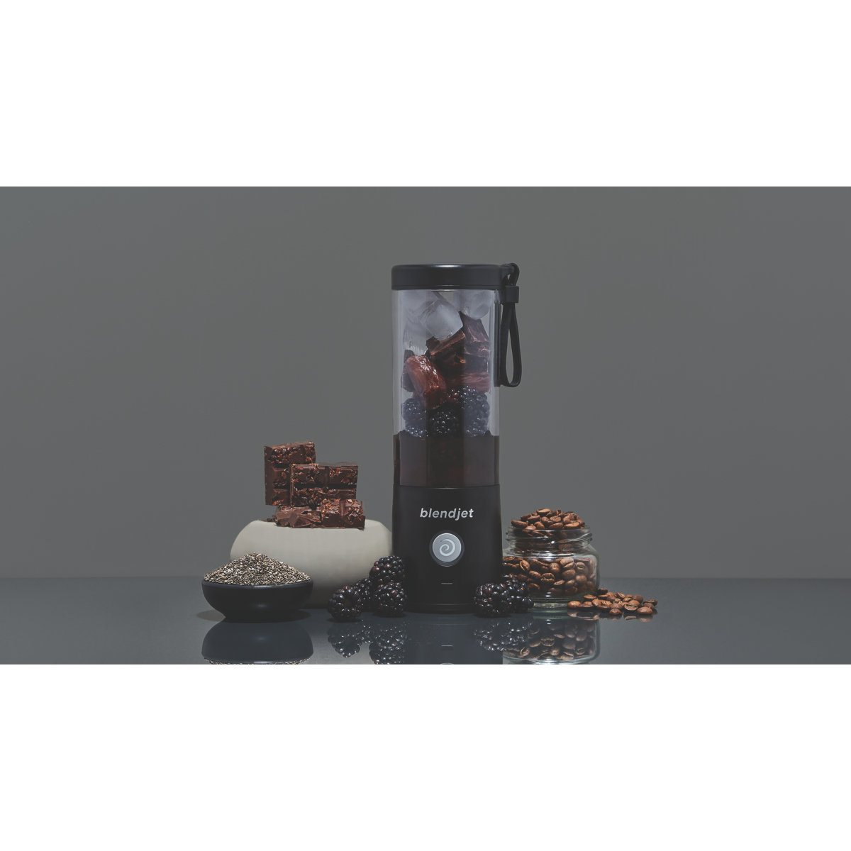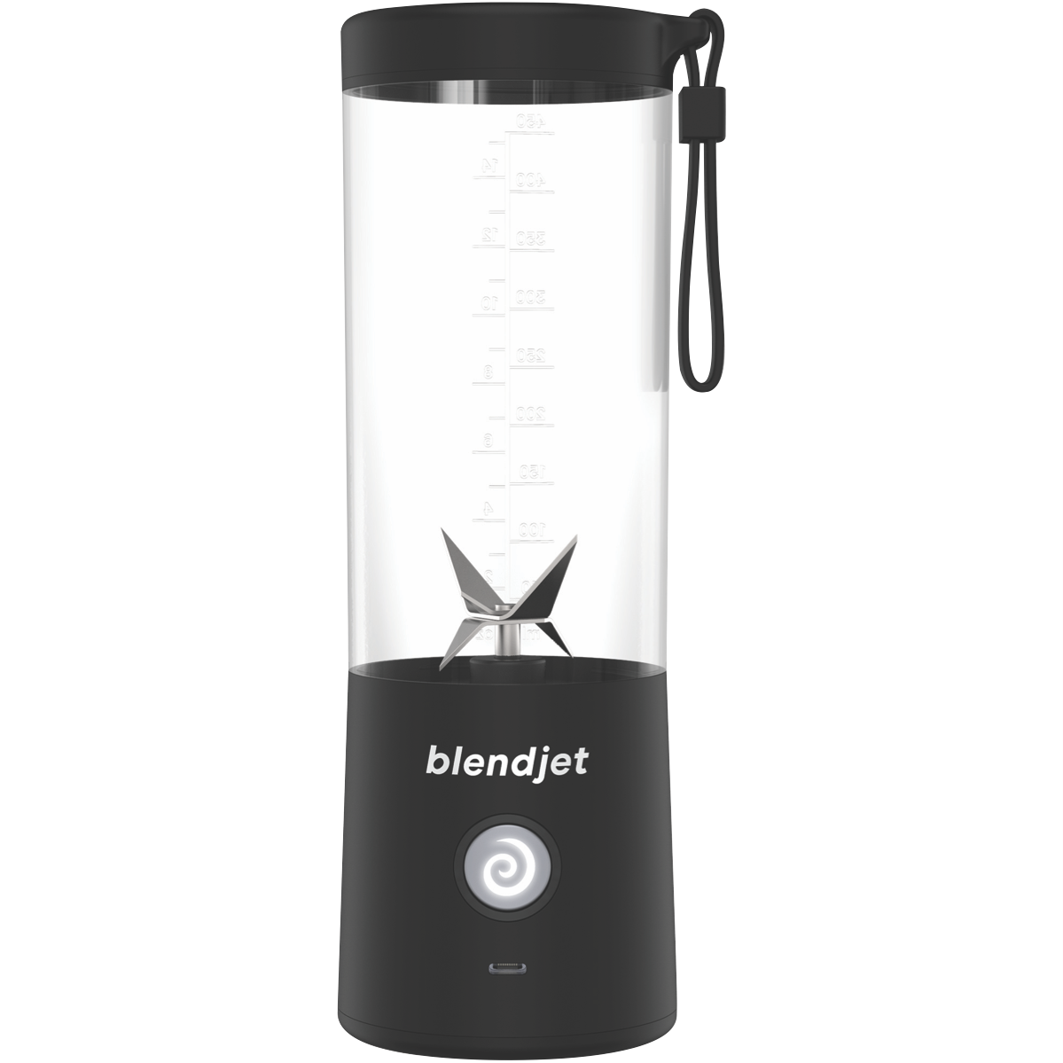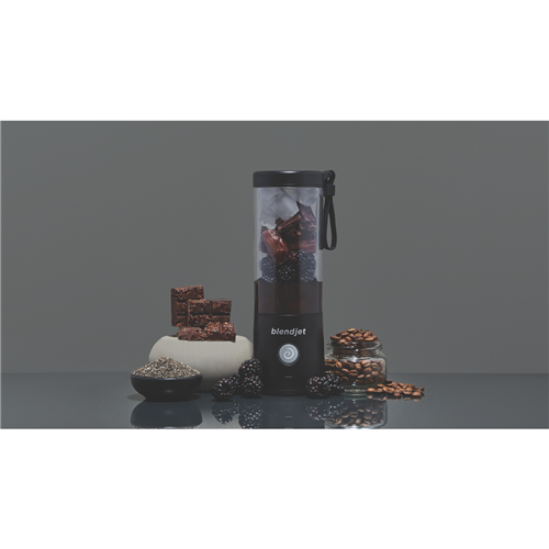 Blending on-the-go has never been easier with the sleek and portable BlendJet 2. This lightweight blender fits right in your bag allowing you to make delicious smoothies protein shakes dips and more wherever you are. The powerful 15+ blends per 1 hour charge 5V electric motor spins a surgical-grade stainless steel 6-point blade at 275 times per second to pulverize fruits veggies and ice into a smooth consistency in seconds. Just add your ingredients to the BPA-free 475ml Tritan jar twist on the water-resistant lid with handy sip spout press the safety lock button and blend away. The USB-C charging port and 4000mAh rechargeable battery provide cordless convenience for up to 20 blends per charge. Measuring 76mm wide x 230mm high and weighing just 0.61kg the BlendJet 2 comes in a chic matte black finish that looks great on any countertop. Blend and enjoy delicious drinks on the go with this portable high-performance blender. The manufacturer's part number for this product is 250255. Check out the BlendJet 2 today.