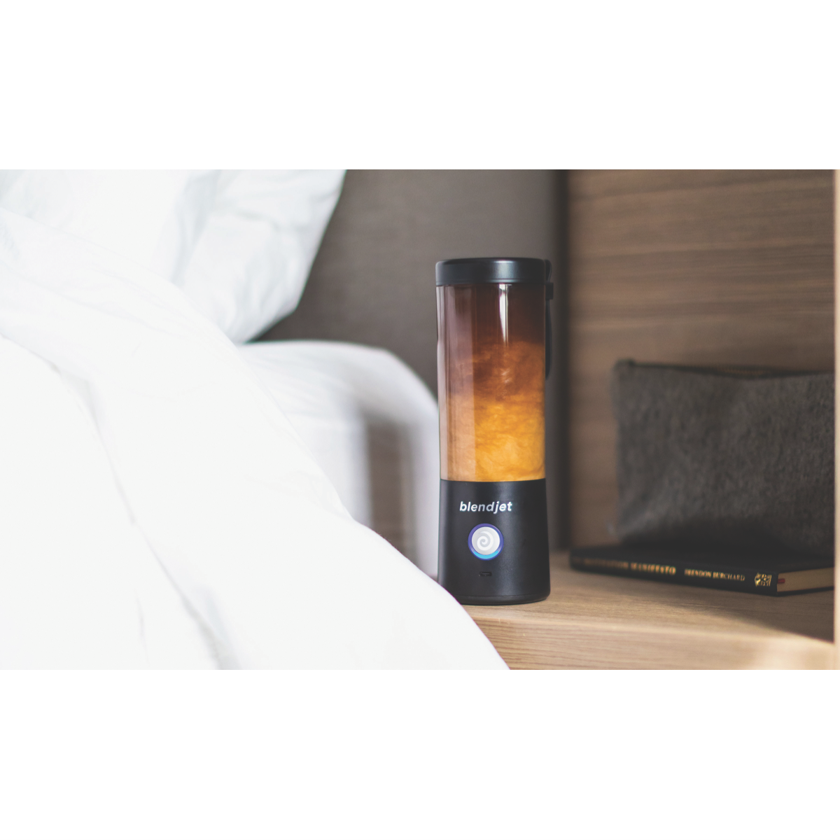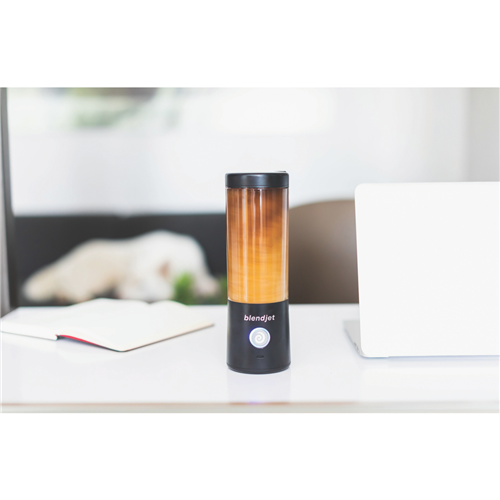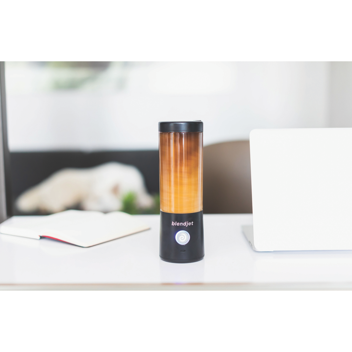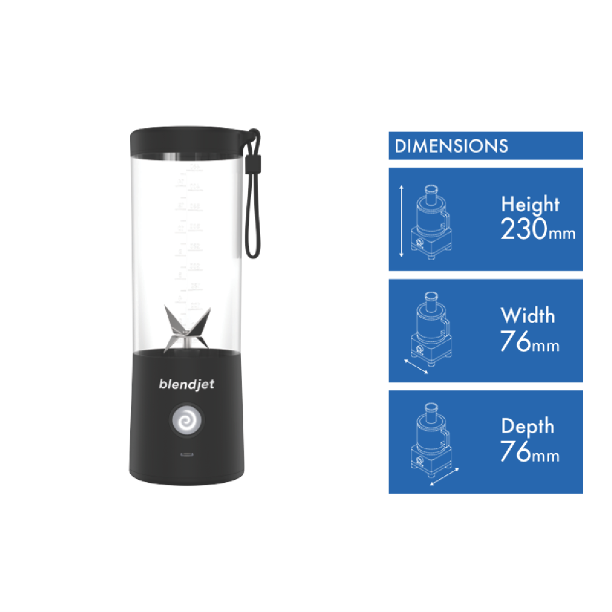 Blending on-the-go has never been easier with the sleek and portable BlendJet 2. This lightweight blender fits right in your bag allowing you to make delicious smoothies protein shakes dips and more wherever you are. The powerful 15+ blends per 1 hour charge 5V electric motor spins a surgical-grade stainless steel 6-point blade at 275 times per second to pulverize fruits veggies and ice into a smooth consistency in seconds. Just add your ingredients to the BPA-free 475ml Tritan jar twist on the water-resistant lid with handy sip spout press the safety lock button and blend away. The USB-C charging port and 4000mAh rechargeable battery provide cordless convenience for up to 20 blends per charge. Measuring 76mm wide x 230mm high and weighing just 0.61kg the BlendJet 2 comes in a chic matte black finish that looks great on any countertop. Blend and enjoy delicious drinks on the go with this portable high-performance blender. The manufacturer's part number for this product is 250255. Check out the BlendJet 2 today.