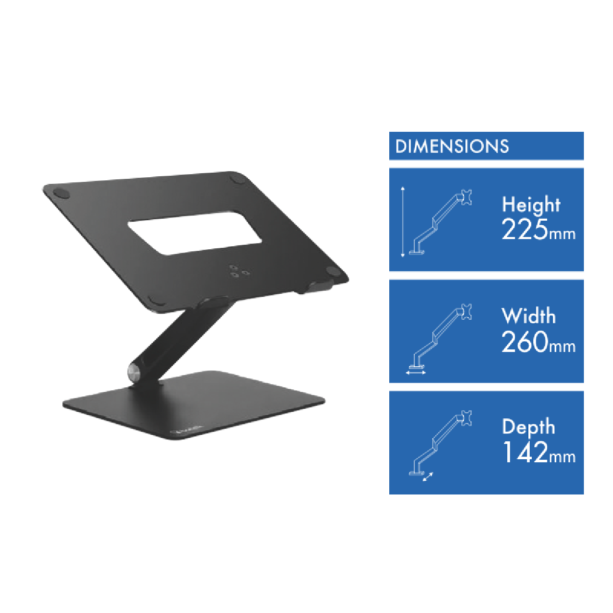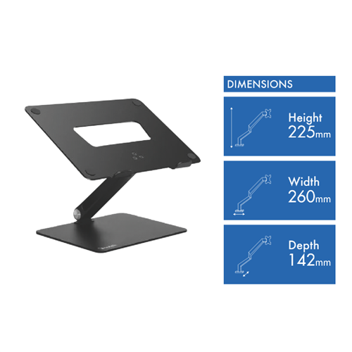 Additional Features 56mm - 215mm Elevation Height, High Grade Premium Aluminum, Silicone Feet, Cable Management, Air Circulation, Fast %26amp; Easy Assembly