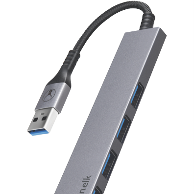 The Bonelk Long-Life USB-A to 4 Port USB 3.0 Hub in Space Grey adds convenient high-speed connectivity to your desktop or laptop computer. This durable hub features four USB 3.0 ports to provide data transfer speeds up to 5Gbps perfect for connecting peripherals like external hard drives flash drives keyboards mice and more. With its compact and lightweight design you can easily toss it in your bag to expand your connectivity options on the go. The durable space grey housing complements your modern devices while 1-year warranty provides peace of mind. Boost your productivity with the versatile connectivity of the Bonelk USB hub. The manufacturer's part number for this product is ELK-80024-R. Check out this hub to expand your USB ports today.