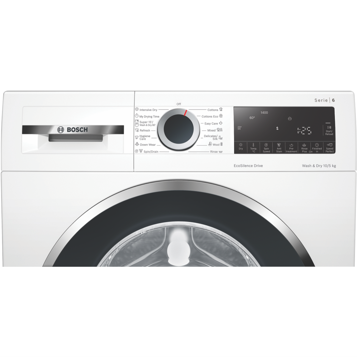 Take your laundry care to the next level with the Bosch 10kg-5kg Combo Washer Dryer. This front load washing machine delivers powerful cleaning and efficient drying in one space-saving unit. With a generous 10kg washing capacity 1400rpm max spin speed and 11 programs including Cottons Easy Care Wool Delicate/Silk Hygiene Care and more this washer tackles loads fast while being gentle on fabrics. It features SpeedPerfect to intensify wash cycles for optimal stain removal Easy Iron and Iron Assist options to reduce wrinkles and Bosch's AntiStain Removal system. Rated 4.5 stars for water efficiency the Bosch washer is designed to conserve resources. When it's time to dry the integrated 5kg condenser dryer gets the job done using minimal energy thanks to its 3 star rating. Measuring 848mm in height this washer dryer combo fits into tight spaces. With intuitive controls quiet operation and backed by a 2 year warranty the Bosch 10kg-5kg Combo Washer Dryer delivers convenience efficiency and German engineering. The manufacturer's part number for this product is WNA254U1AU. See how this space-saving laundry solution can make your life easier.