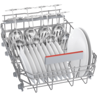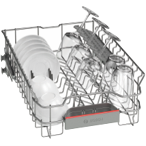 This Wi-Fi connected Bosch 45cm Freestanding Dishwasher SPU6IMS01A offers an expert clean of various dishes pots and glassware with dedicated wash programs and five spray levels for maximum water contact and optimal results all while allowing for easy management of settings via an app. It has an 11-place setting with an upper RackmatickPlus basket that can be height adjusted in three ways to help make room for bulkier items. Select one of six programs like 'Eco Wash' for a lower temperature wash of lightly soiled dishes 'Auto Wash' to have settings automatically set based on the level of soiling or 'Pots & Pans' for an intensive wash at a higher temperature. Plus select the 'Extra Dry' option for an extended drying time reduce wash time with SpeedPerfect or select HygienePlus for an increased final rinse temperature to have grubby items perfectly sanitised. It has a 3.5 Star Energy Rating and a 4 Star WELS Water Rating WELS Licence Number D02566. The settings of this Bosch dishwasher can be controlled via the Bosch Home Connect app on your smartphone - review the Easy Start best program recommendations based on your input on the type of dishes and cleaning preference option selected view the estimated water and energy consumption of each program or adjust a wash option even after the program has started. Other convenience features include a Rack Stopper to prevent derailing of the bottom basket and glass rack below for tall stemmed glasses.