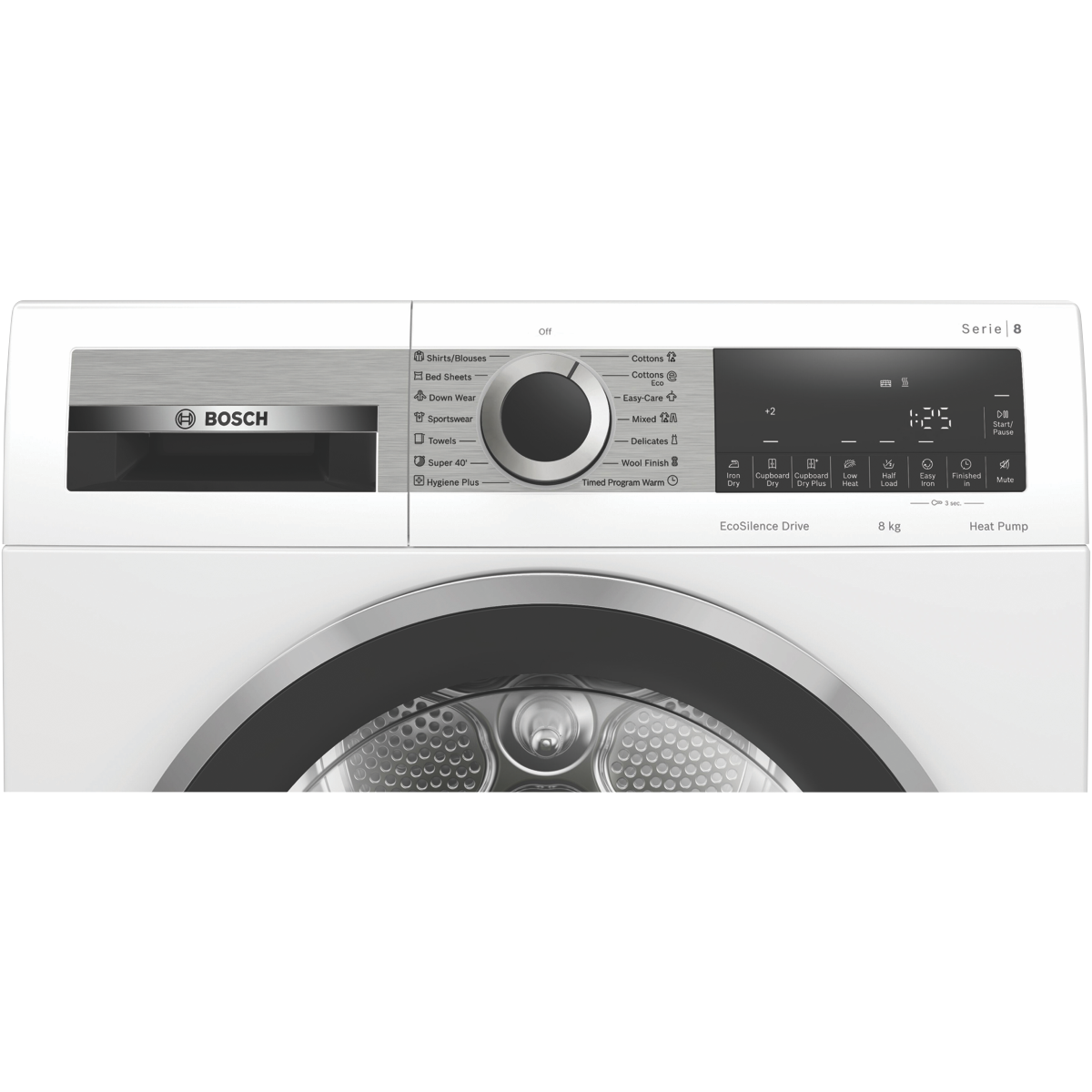 Additional Features Load Recommendation, SelfCleaning Condenser, Bed Linen Program With Reversible Drum, Half Load Option, Auto Dry, ActiveAir Technology, Time Delay, End Of Cycle Indicator, Large Water Condensation Container, Series 8,