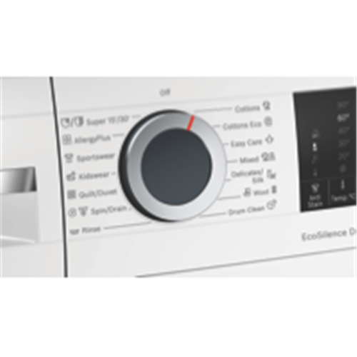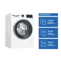 Revolutionize your laundry with the powerful Bosch Series 6 front load washer. With a spacious 9kg capacity this white washing machine can handle even the largest loads with ease. The EcoSilence drive operates quietly at just 78L per wash while the speedy 1400rpm max spin speed delivers efficient drying. Packed with 14 diverse wash programs like Cottons Wool Easy Care Delicate and more this washer adapts to handle any fabric. The intuitive controls make operation a breeze with options like speed temperature and time delay. Key features like the AllergyPlus hygiene cycle reload function and AquaSecure flood prevention give you complete peace of mind. Bring exceptional cleaning and convenience home with the energy and water efficient Bosch Series 6 front loader washer. With its durability and 2 year warranty this thoughtfully designed appliance will keep your laundry fresh and fabulous for years to come. The manufacturer's part number for this product is WGA244U0AU. Choose this washer to refresh your laundry routine today.