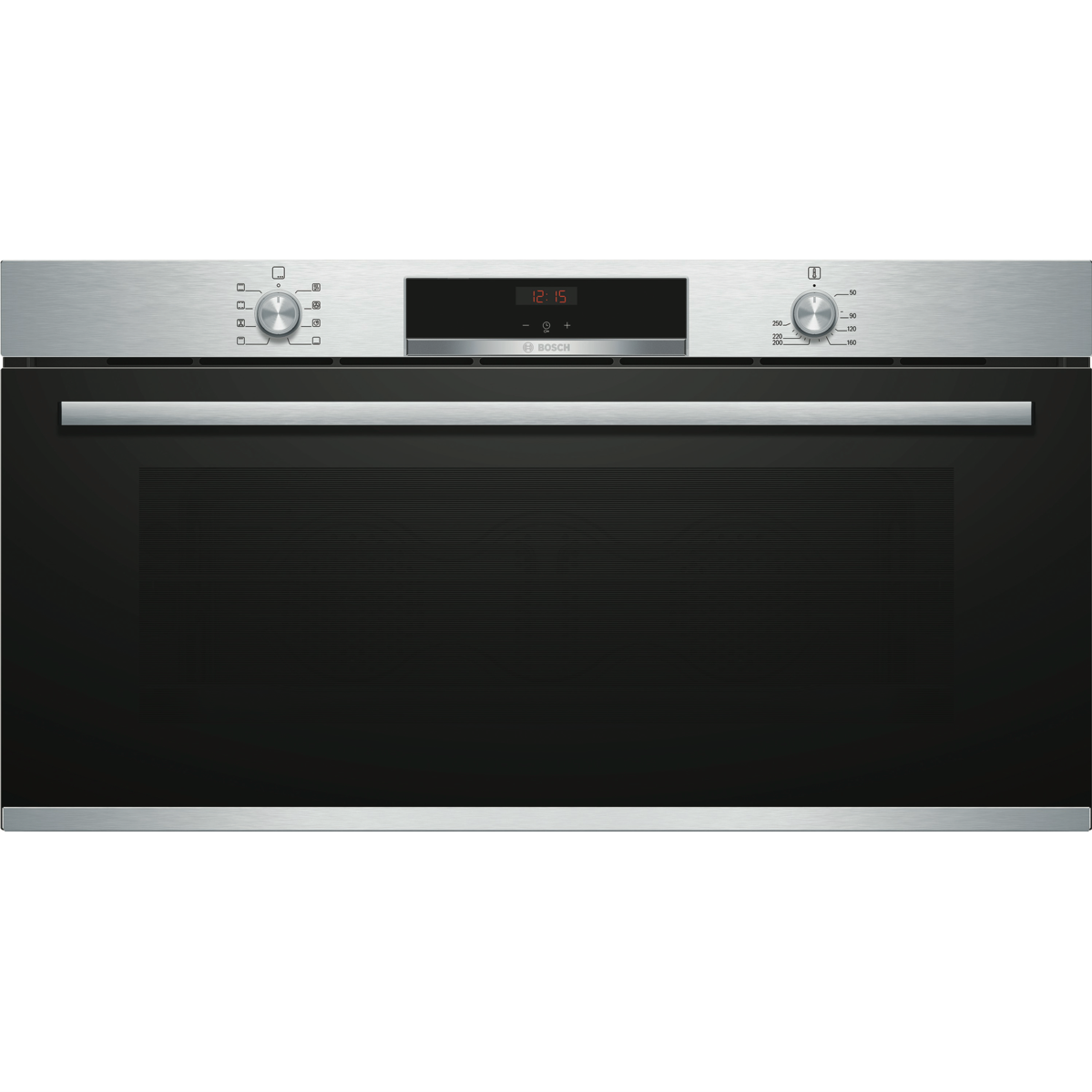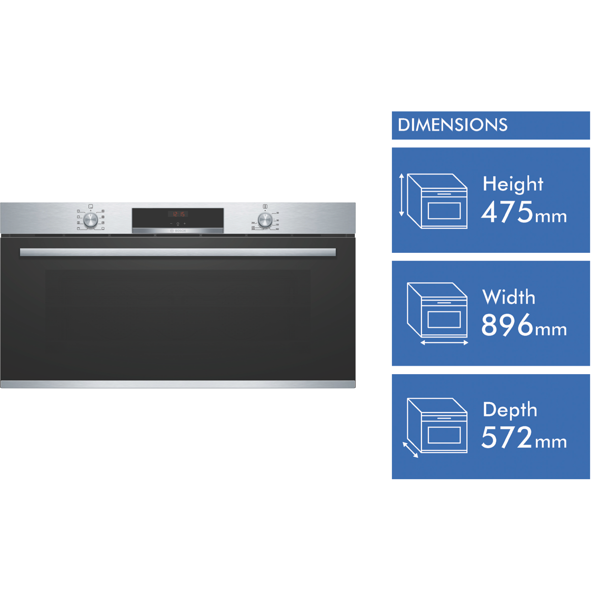 Bring the joy of cooking back into your kitchen with the Bosch Series 4 90cm Stainless Steel Electric Oven. This versatile benchtop appliance makes meal prep a breeze with 7 convenient oven functions like Hot Air Top and Bottom Heating Full Width Grill and more. The spacious 85L capacity accommodates everything from family roasts to batch baking while the included telescopic rails let you slide dishes in and out with ease. With a sleek stainless steel finish retractable control knobs and touch controls this oven combines modern style and intuitive operation. The multi-function oven gently cooks your dishes to perfection from crispy pizzas to juicy roasts. Meanwhile the full width grill gives you plenty of space to make toasted sandwiches for the whole family. Best of all the child safety lock gives you peace of mind when little ones are nearby. Bring gourmet results to your kitchen with the Bosch 90cm Electric Oven. It's built to last with a 2 year manufacturer's warranty. Installation by a licensed electrician is required. The manufacturer's part number for this product is VBC5540S0. Discover how Bosch quality can upgrade your cooking today.