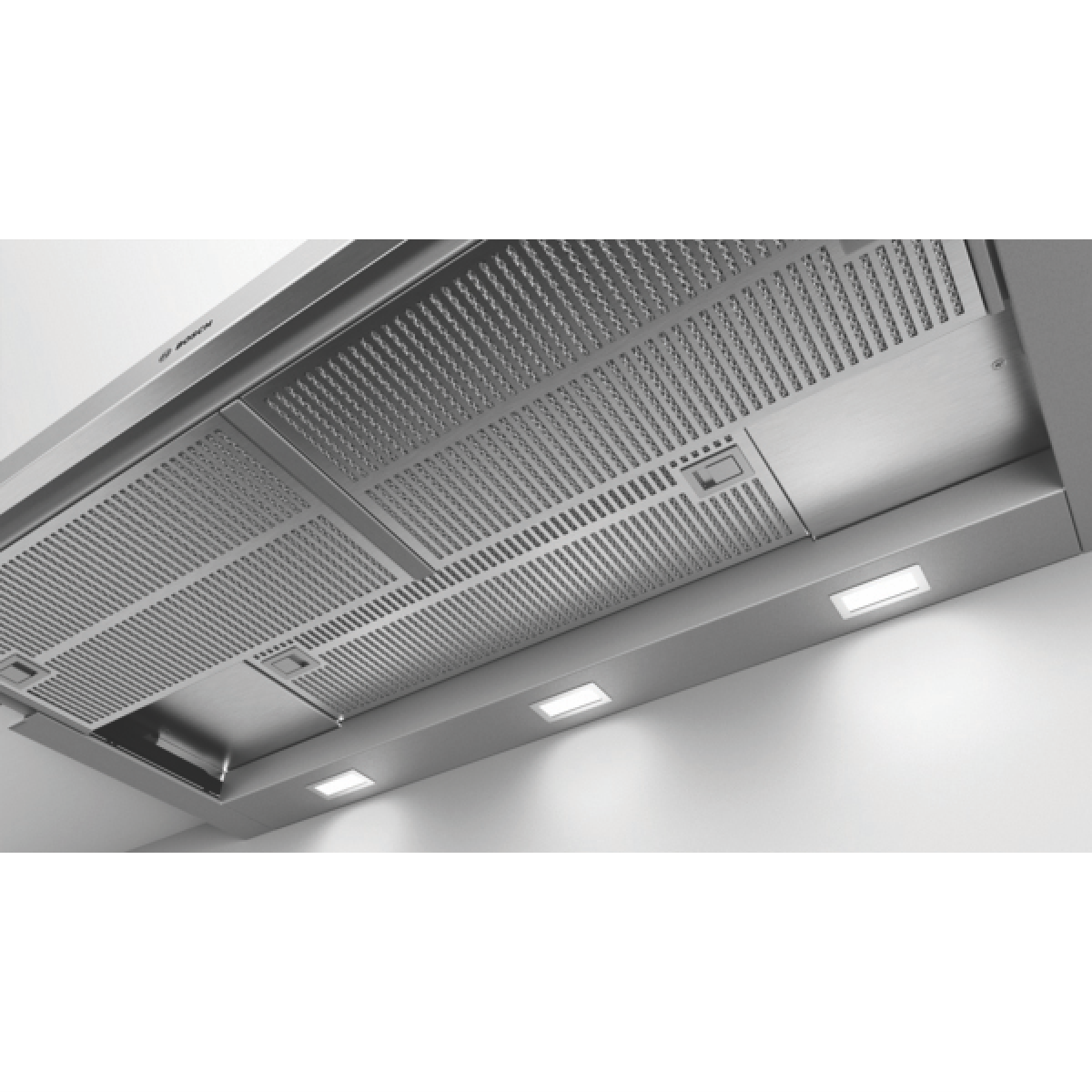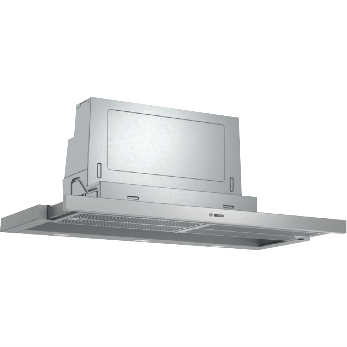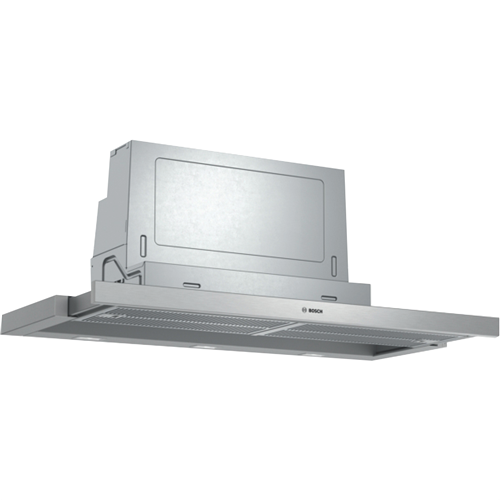 Step up your kitchen with the sleek Bosch 90cm Series 4 slideout rangehood. This stainless steel beauty makes a sophisticated statement while powerfully clearing the air. With EcoSilence technology for quiet operation and brilliant LED lighting to illuminate your cooking this rangehood really performs. Slide out the telescopic canopy to switch on automatically then sit back as 3 fan speeds (plus intensive) quietly extract odors and steam. The dishwasher safe metal grease filters trap grime for easy cleaning and ducted or recirculated modes give you flexibility for installation. Bring home the Bosch difference with 2 years warranty and a rangehood designed to last. This is supported by Bosch's reliability promise so you can cook with confidence for years to come. The manufacturer's part number for this product is DFS097A51A.