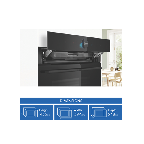 Discover culinary perfection with the Bosch Series 8 Accentline 45cm Compact Steam Oven. This versatile steam oven opens up a world of possibilities in your kitchen with its array of features that will elevate your cooking. The generous 47L capacity accommodates everything from family feasts to single servings. With a powerful 3300W output the Accentline Steam Oven delivers excellent performance. The touch control panel with TFT display provides an intuitive cooking experience. Enjoy exceptional results with the 4D HotAir function that circulates heat evenly throughout the oven. The full width grill pizza setting and AirFry mode offer quick and convenient cooking while the bottom heating slow cooking and preheat functions are ideal for more delicate dishes. Keep your food warm and ready to serve with the keep warm function. With 24 functions in total you'll have the flexibility to prepare an endless variety of recipes. The Accentline model also includes a meat probe for perfectly cooked roasts and an enamel baking tray steam containers grid and universal pan. Covered by Bosch's 2 year warranty this feature-packed steam oven will be a welcome addition to your kitchen. Discover the joy of cooking with steam and explore your culinary potential with the Bosch Series 8 Accentline Compact Steam Oven. The manufacturer's part number for this product is CSG958DB1.
